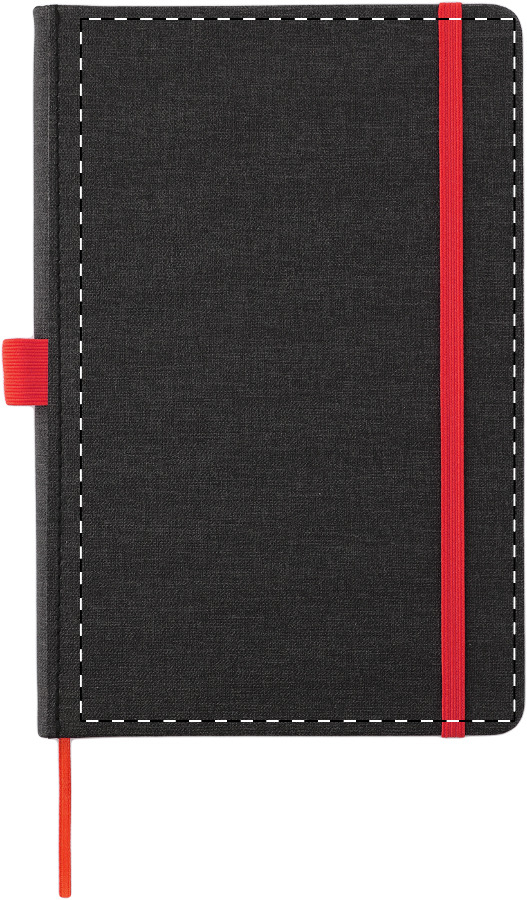 PU bőrrel borított jegyzetfüzet megegyező színű könyvjelzővel, gumiszalaggal és tolltartóval. 96 vonalas lappal, A5 méret.
