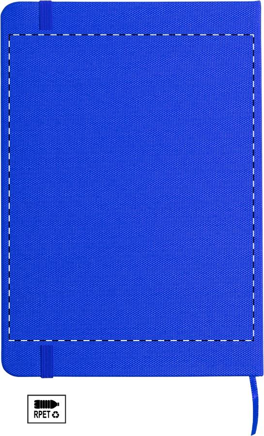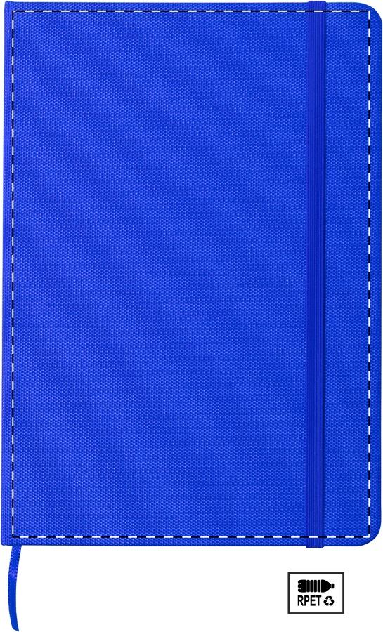 RPET poliészter borítású jegyzetfüzet 80 vonalas lappal, könyvjelzővel és gumipánttal. Méret: A5.