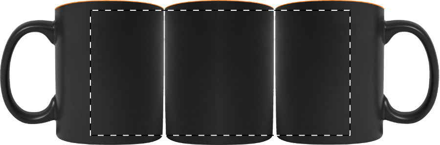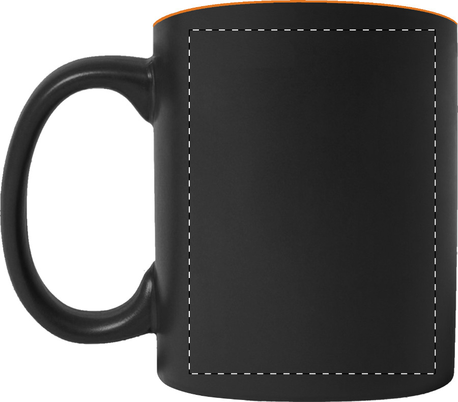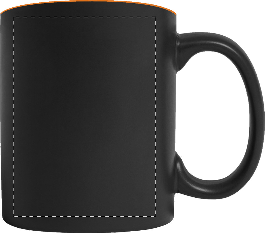 Fekete kerámiabögre, színes belső résszel, 350 ml. A gravírozott logó a bögre belsejével megegyező színű. Dobozban szállítjuk.