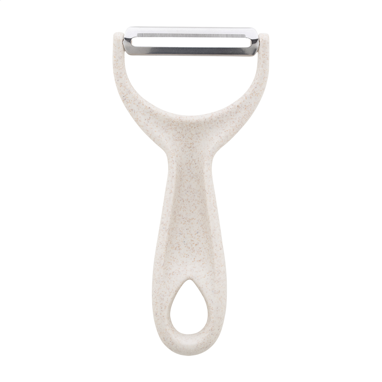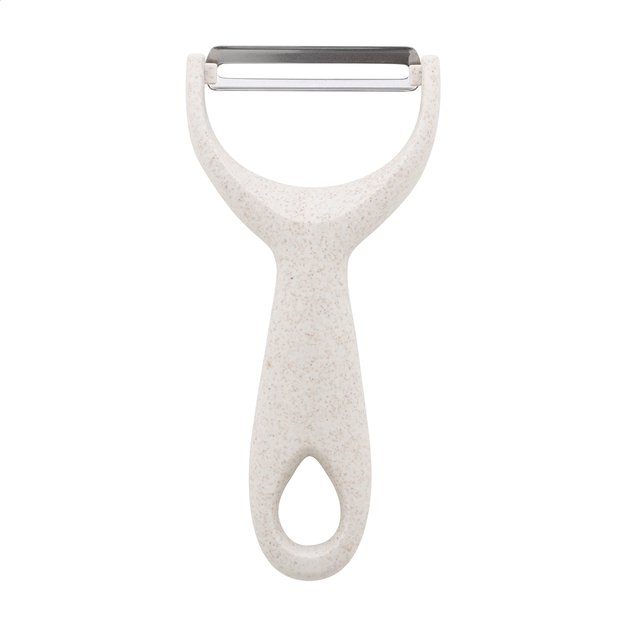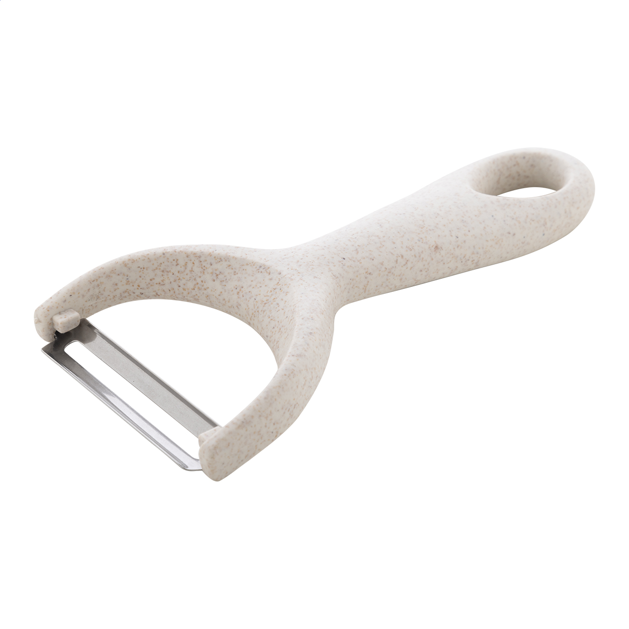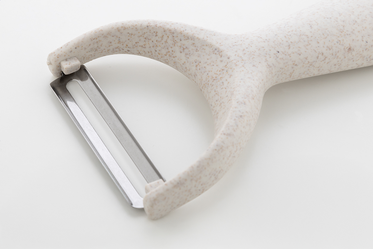 PP műanyagból készült zöldséghámozó rozsdamentes acél pengével.