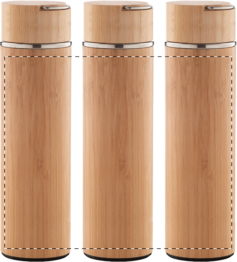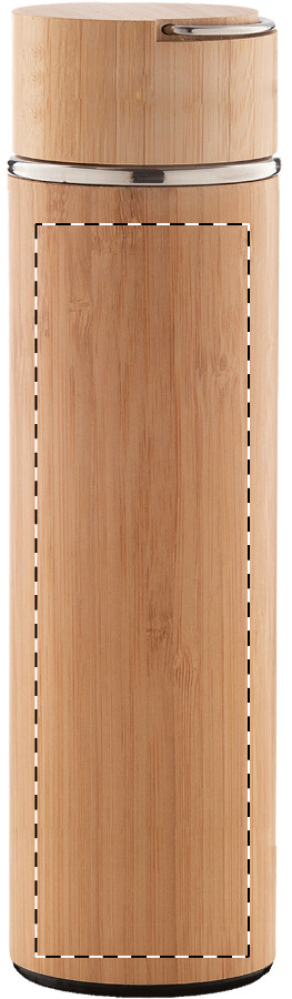 Duplafalú rozsdamentes acél és bambusz, szigetelt termosz teafűtartóval és hordozható fedéllel. 450 ml.