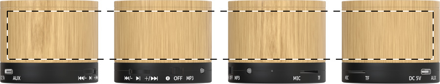 Vezeték nélküli hangszóró újrahasznosított ABS műanyag és bambusz házban, fém hálóval és újratölthető akkumulátorral (300 mAh). Kihangosító és micro SD MP3 lejátszási funkciókkal. USB töltőkábellel.