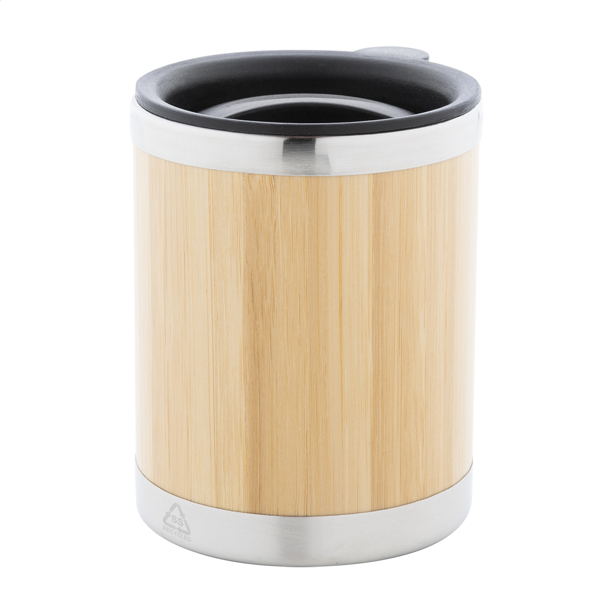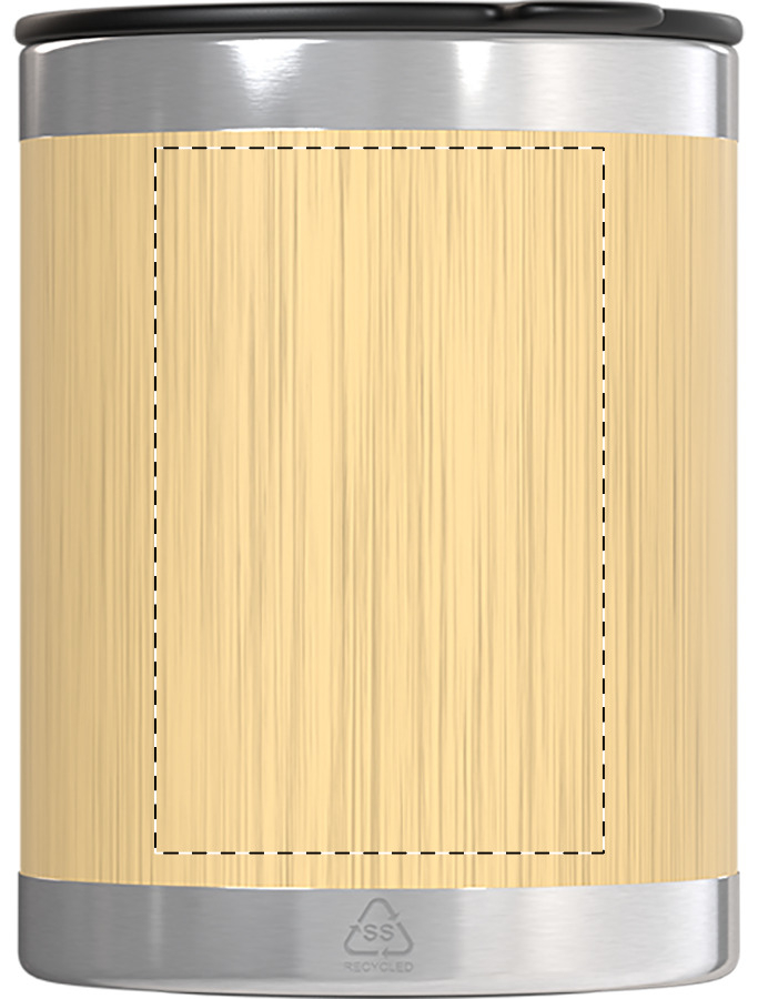 Bambusz borítású, duplafalú újrahasznosított rozsdamentes acélból készült hőszigetelt thermo pohár PP ivófedéllel, 300 ml.