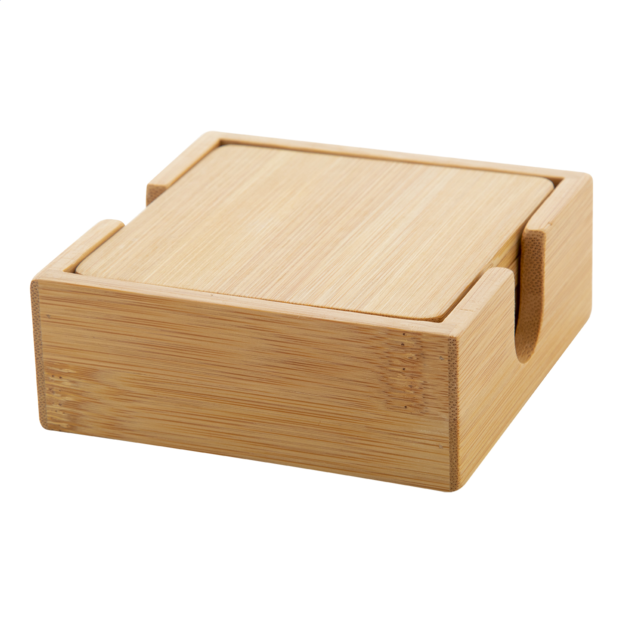 4 darabos bambusz poháralátét szett, tartóval.