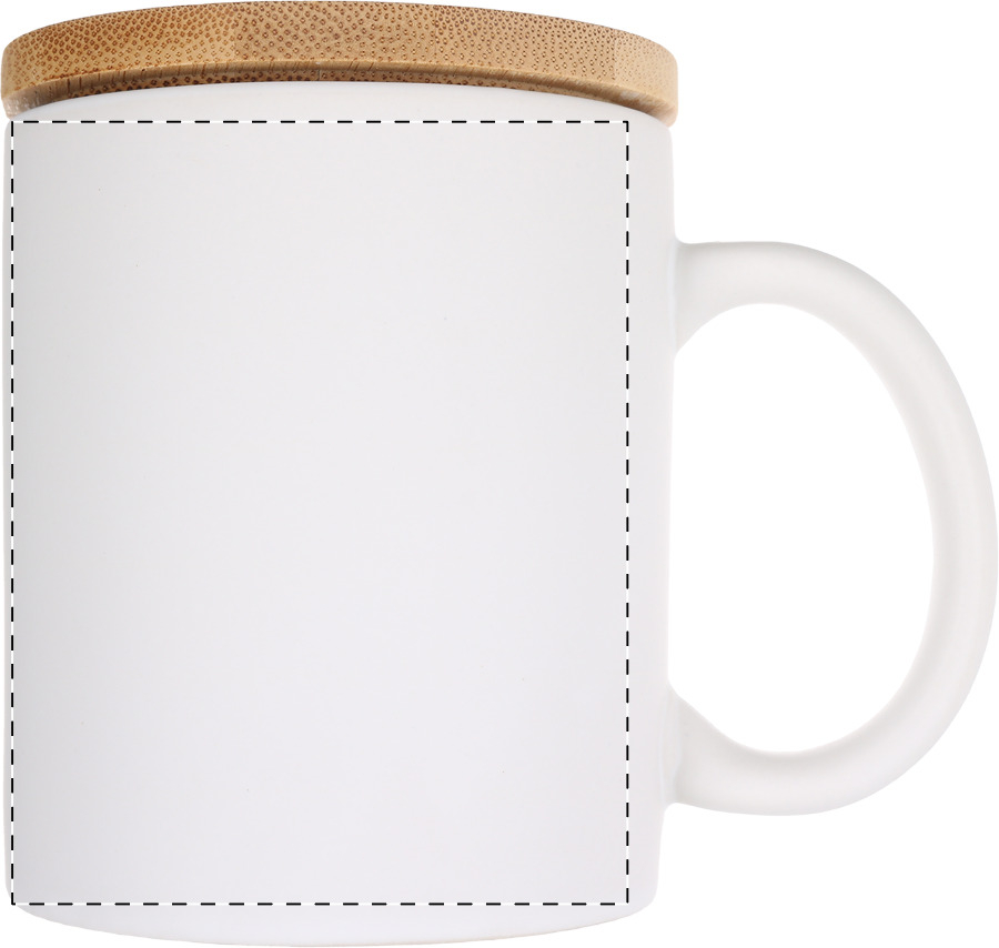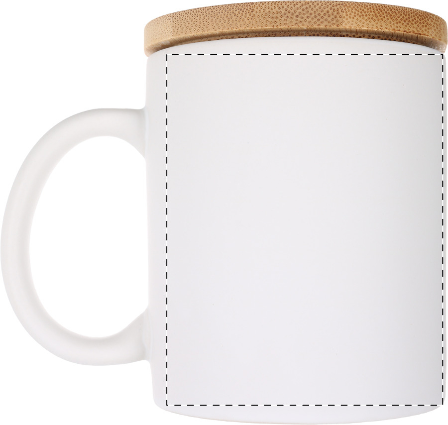 Kerámia bögre matt felülettel és bambusz fedéllel, 370 ml. Kraft papír dobozban szállítjuk.