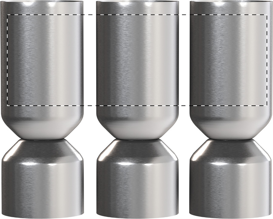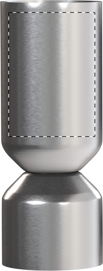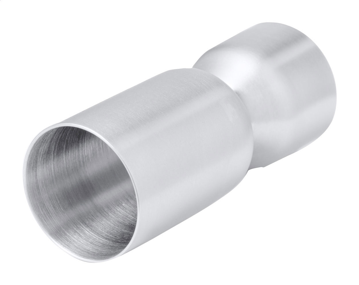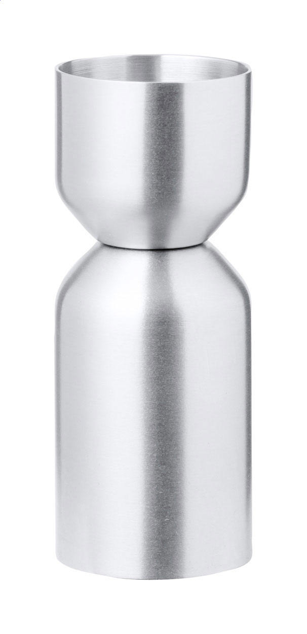 Rozsdamentes acélból készült mérce pohár, 30 ml/15 ml űrtartalommal.