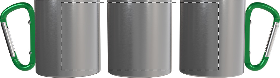 Rozsdamentes acélból készült bögre színes karabinerrel, 200 ml. Dobozban szállítjuk.