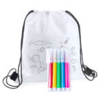Non-woven anyagból készült színezhető hátizsák gyerekeknek, 5 db színes filctollal.