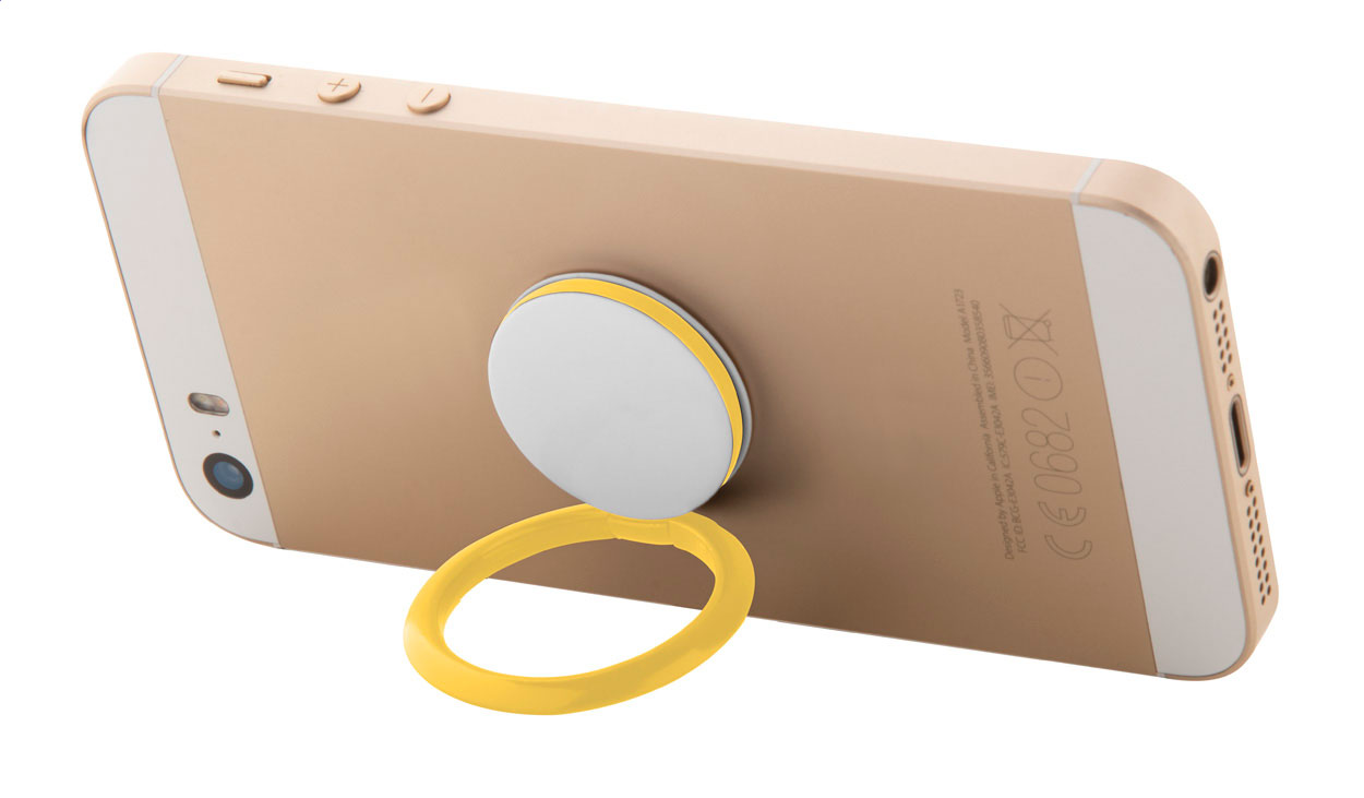 Kör alakú, műanyag és öntapadó mobiltelefon-tartó gyűrű.