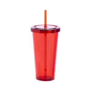 Átlátszó, színes műanyag pohár, megegyező színű fedéllel és szívószállal, 750 ml.