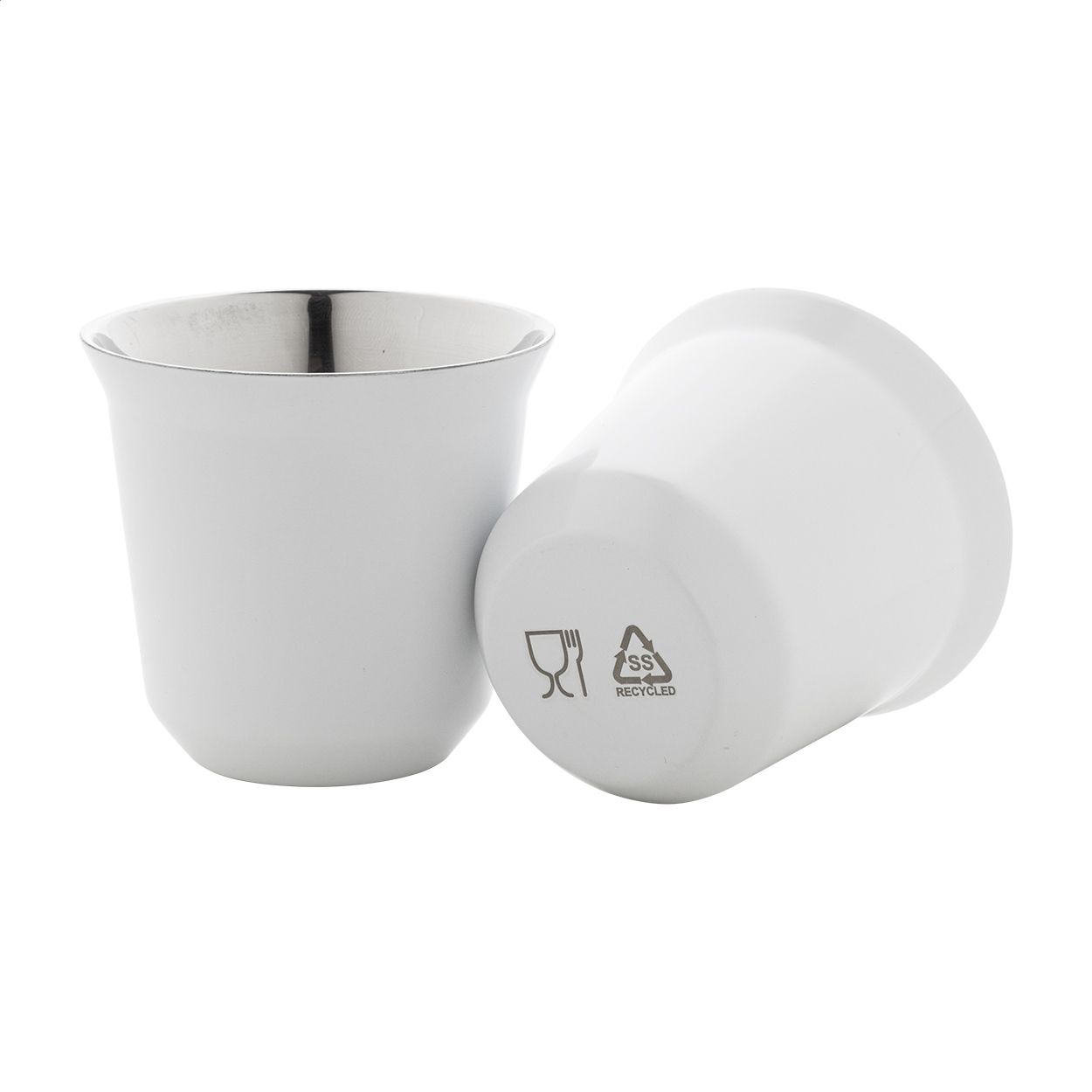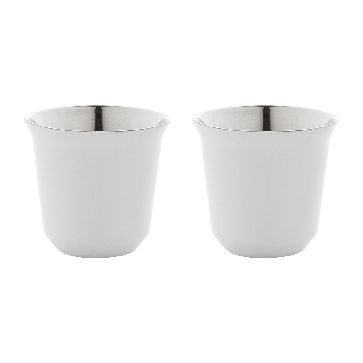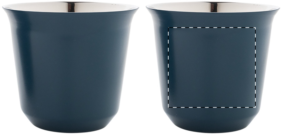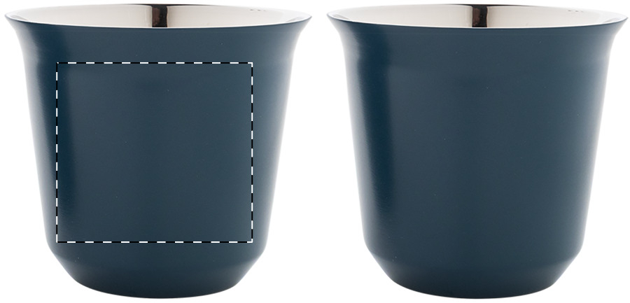 2 darabos eszpresszó csésze szett kávékapszula alakú, duplafalú, hőszigetelt thermo csészékkel, újrahasznosított rozsdamentes acélból, 80 ml. Kraft papír dobozban.