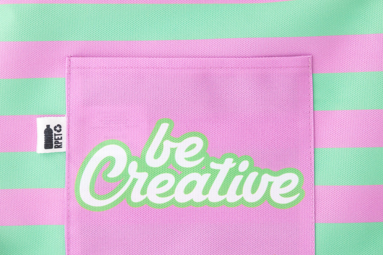 Egyedi gyártású 600D RPET poliészter kötény gyerekeknek elülső zsebbel és teljes felületén szublimációval nyomtatott grafikával. Minimális rendelési mennyiség: 25 db.