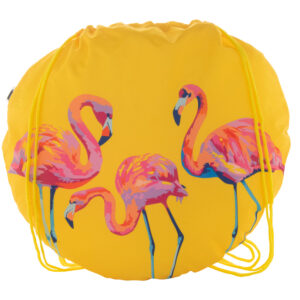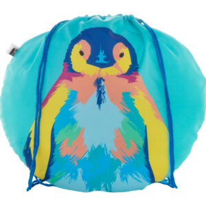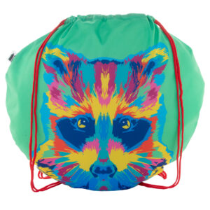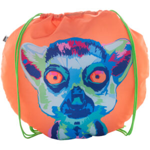 Egyedi gyártású, labda alakú összehúzható hátizsák színes zsinórral, 190T RPET poliészter. Teljes felületén szublimációs nyomtatással ellátva és megkülönböztető RPET címkével. Minimális rendelési mennyiség: 25 db.