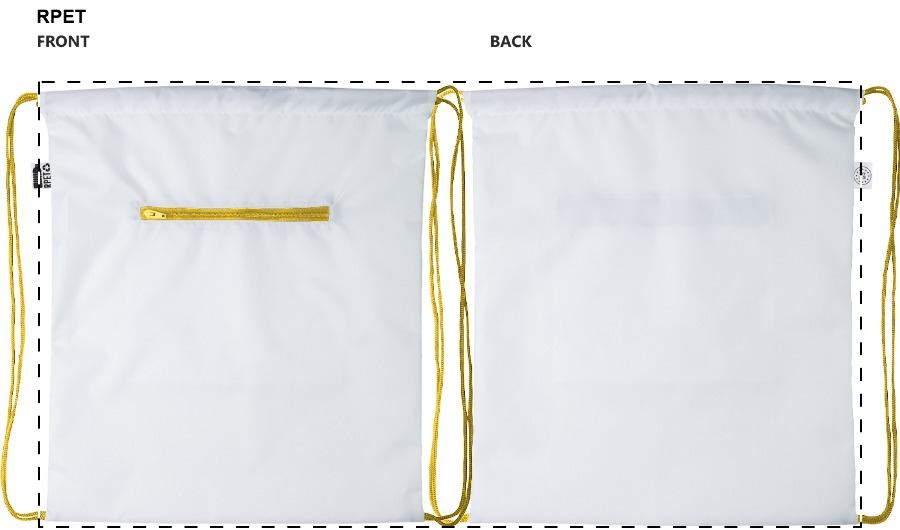 Egyedi gyártású hátizsák RFID védelemmel ellátott elülső zsebbel, 190T RPET poliészter. Teljes felületén szublimációs eljárással emblémázva, megkülönböztető RPET címkével. Minimális rendelési mennyiség: 25 db.