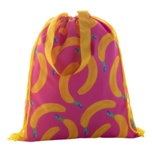 Egyedi gyártású hátizsák színes, zsinórfüles vállpánttal és hosszú hordfüllel, 190T poliészter. Bevásárlótáskaként is használható. Teljes felületén szublimációs eljárással emblémázva. Minimális rendelési mennyiség: 25 db.