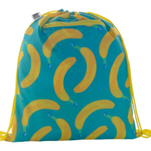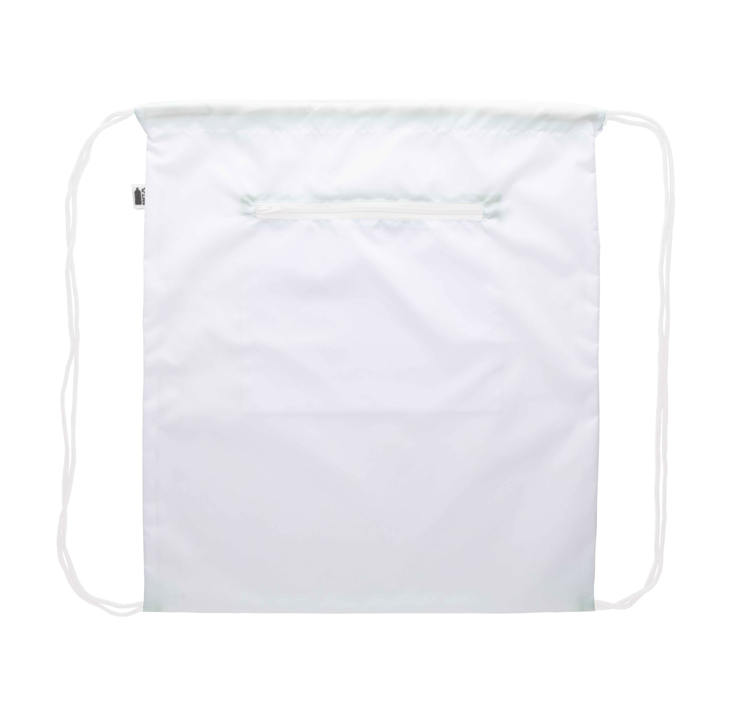 Egyedi gyártású hátizsák, zsinórfüles vállpánttal, cipzáras zsebbel, 190T RPET poliészter. Teljes felületén szublimációs eljárással emblémázva. Megkülönböztető RPET címkével. Minimális rendelési mennyiség: 25 db.