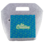 Egyedi gyártású, RPET filc cipzáras hűtőtáska alumínium béléssel és full colour nyomott első zsebbel. Vágott fogantyúkkal és megkülönböztető RPET címkével. Az ár tartalmazza a szublimációs nyomtatást. Minimális rendelési mennyiség: 25 db.