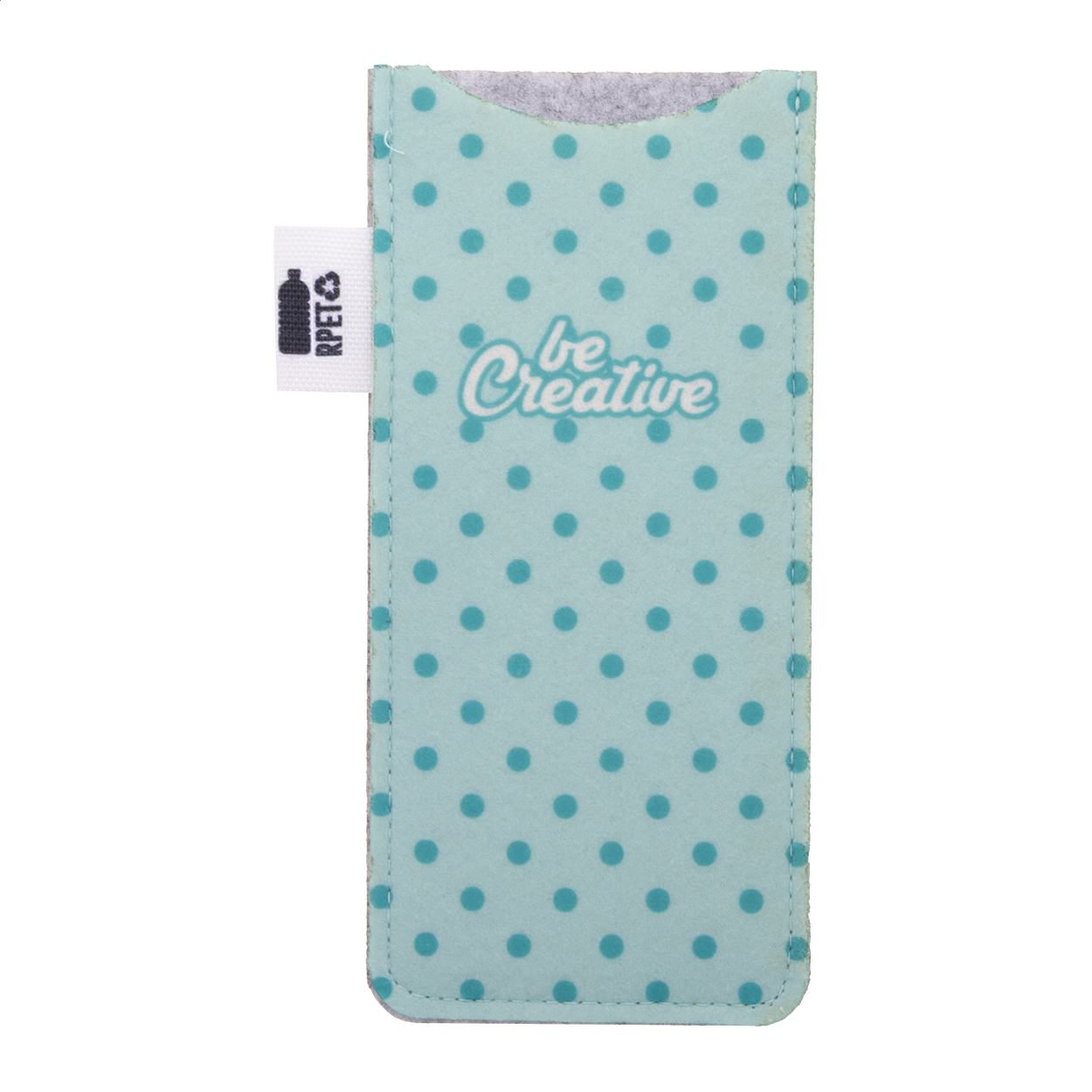 Egyediesíthető RPET filc napszemüvegtok full colour emblémázású előlappal. Megkülönböztető RPET címkével. Az ár tartalmazza a szublimációs emblémázást. Minimális rendelési mennyiség: 50 db.