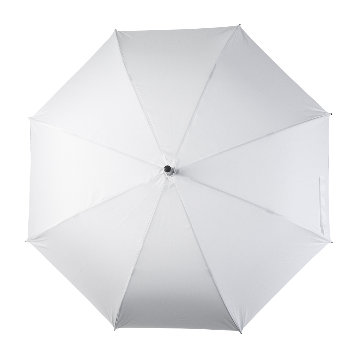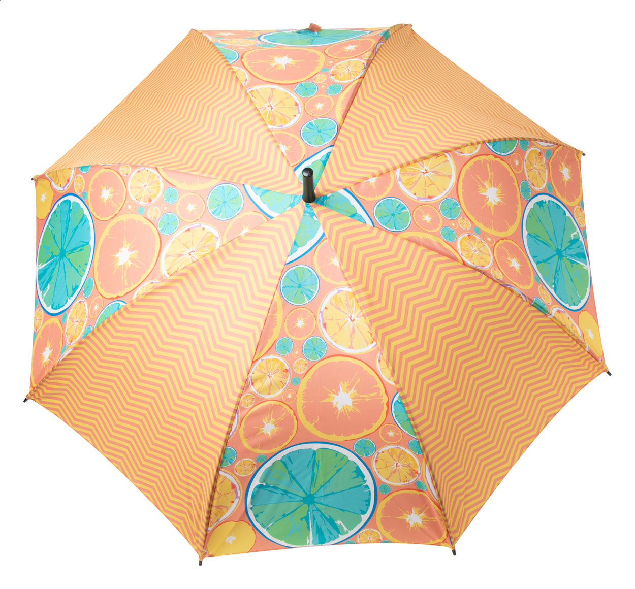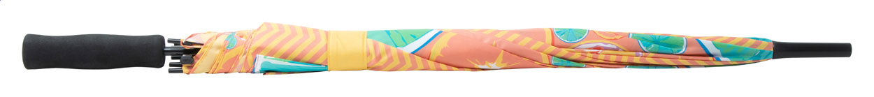 Egyedi, 8 paneles automata esernyő fém nyéllel, EVA fogantyúval és üvegszálas bordákkal. 190T pongee. Szublimációs eljárással nyomtatott grafika minden panelen. Minimális rendelési mennyiség: 50 db.