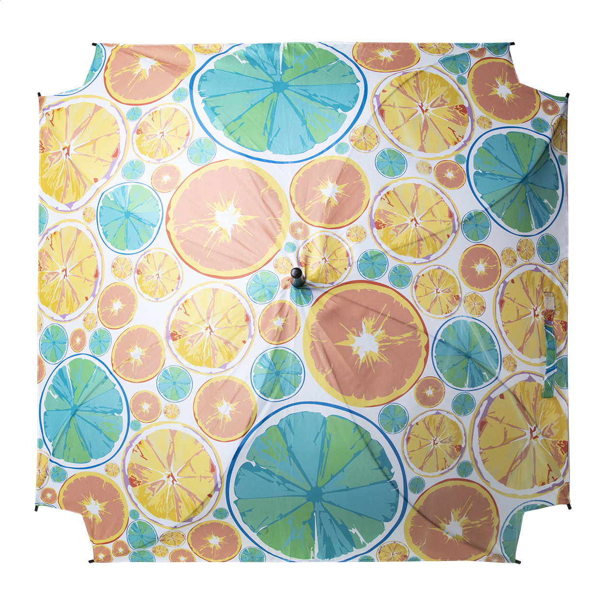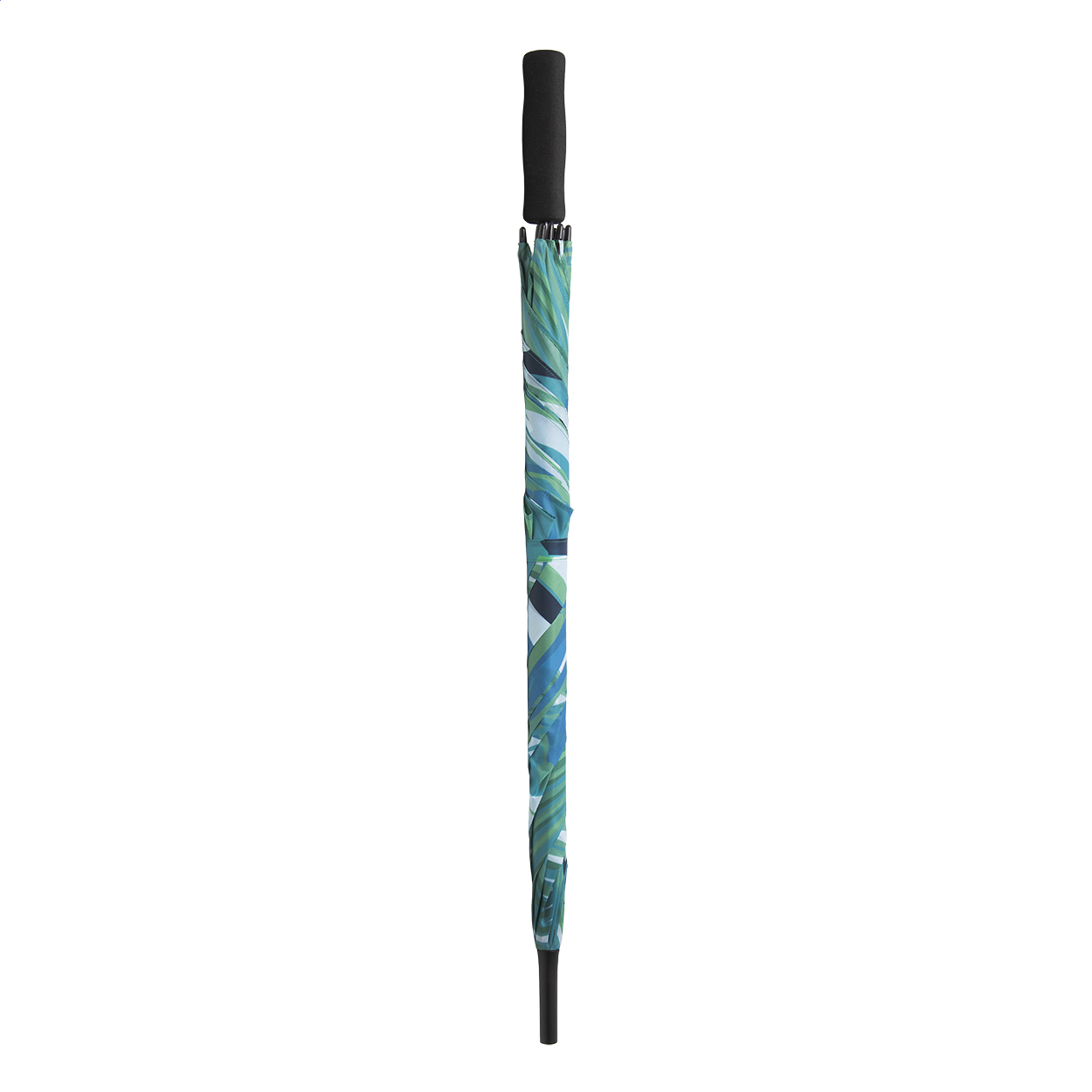 Egyediesíthető, szögletes formájú automata esernyő, fém nyéllel, üvegszálas vázzal, EVA fogantyúval. 190T pongee. Szublimáció emblémázással. Minimális rendelési mennyiség: 50 db.