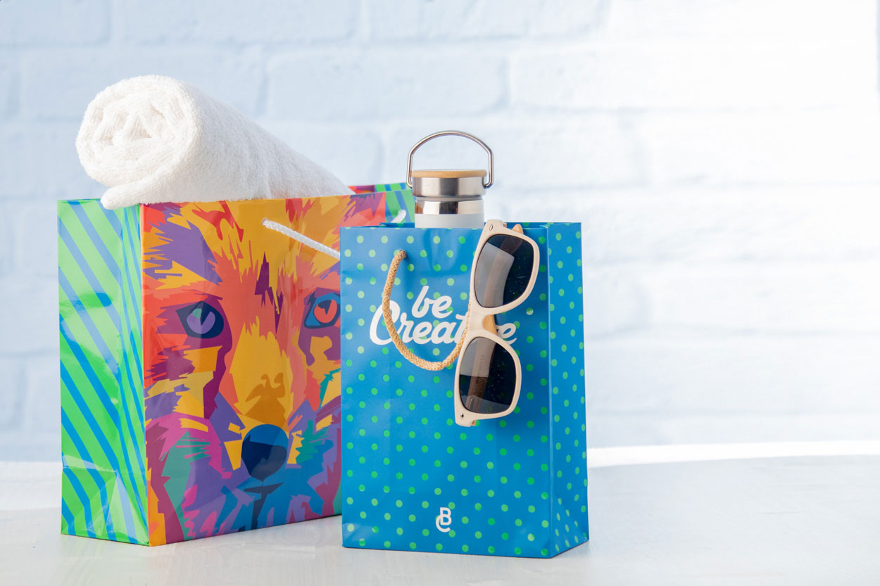 Egyedileg összeállítható bevásárlótáska, polipropilén fülekkel. Nyomtatás: CMYK vagy direkt színes (5 Pantone színig). Minimális rendelési mennyiség: 500 db.