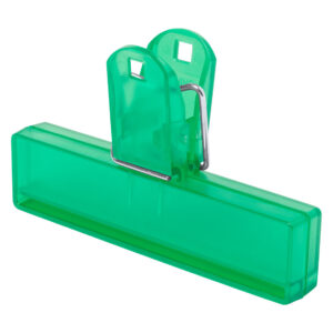 Áttetsző műanyagból készült tasakzáró csipesz.