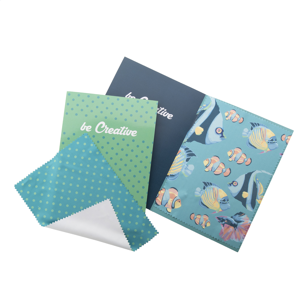 Testreszabható képeslap mindkét oldalán egyedi grafikával nyomtatva. Szublimációs technológiával emblémázott mikroszálas törlőkendővel (180 g/m²). Minimális rendelési mennyiség: 100 db.