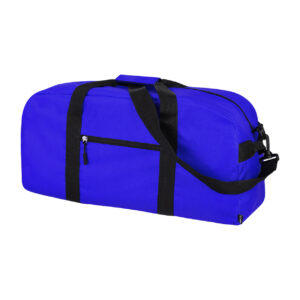 RPET sporttáska cipzáras fő rekesszel és első zsebbel, állítható vállpánttal. 600D RPET poliészter, megkülönböztető RPET címkével.