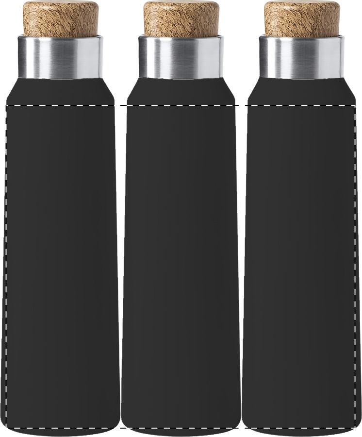 Rozsdamentes acél, egyfalú sportkulacs parafa mintás fedéllel, 770 ml. Kraft papír dobozban szállítjuk. Nem alkalmas szénsavas italok tárolására.