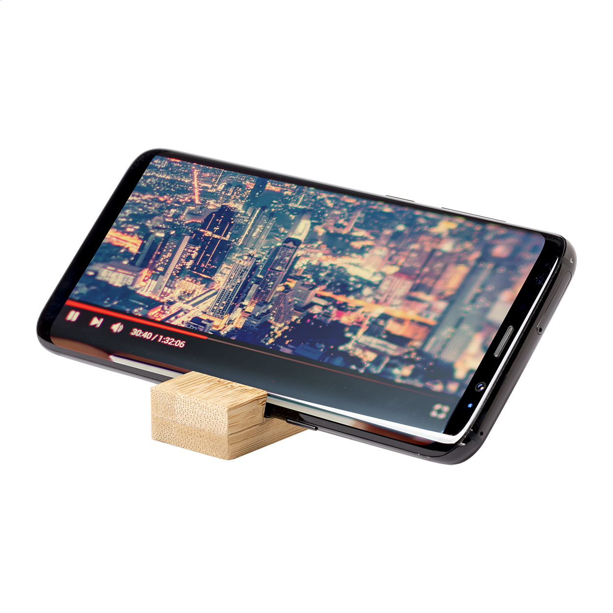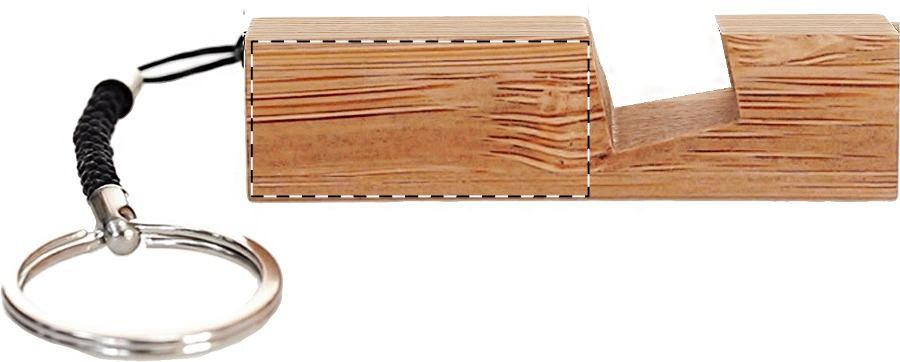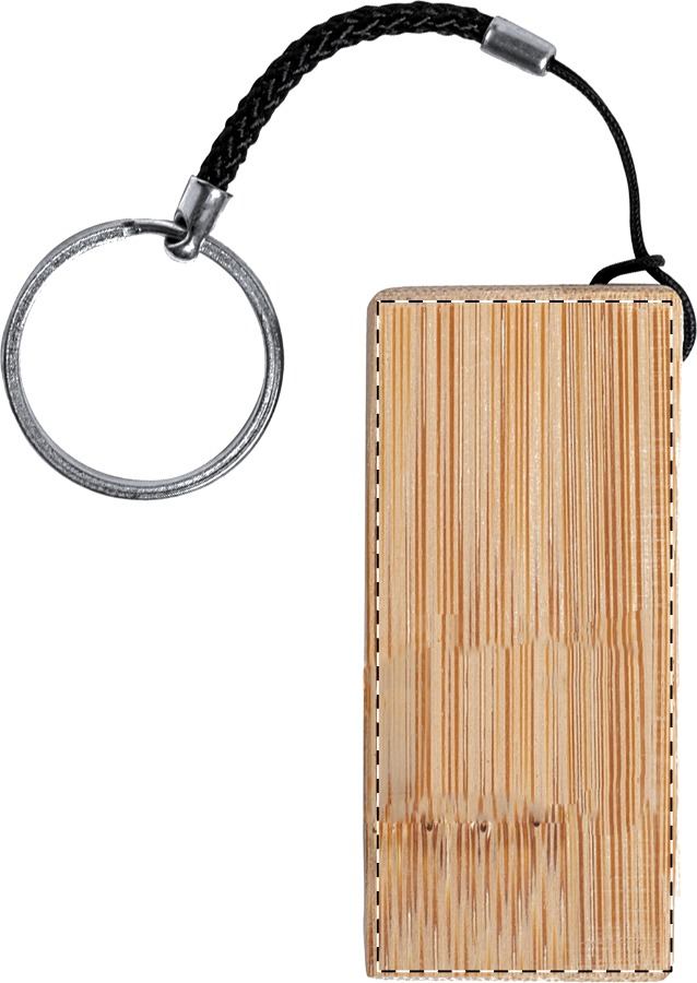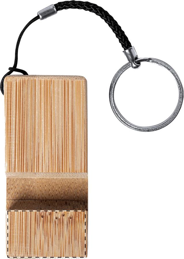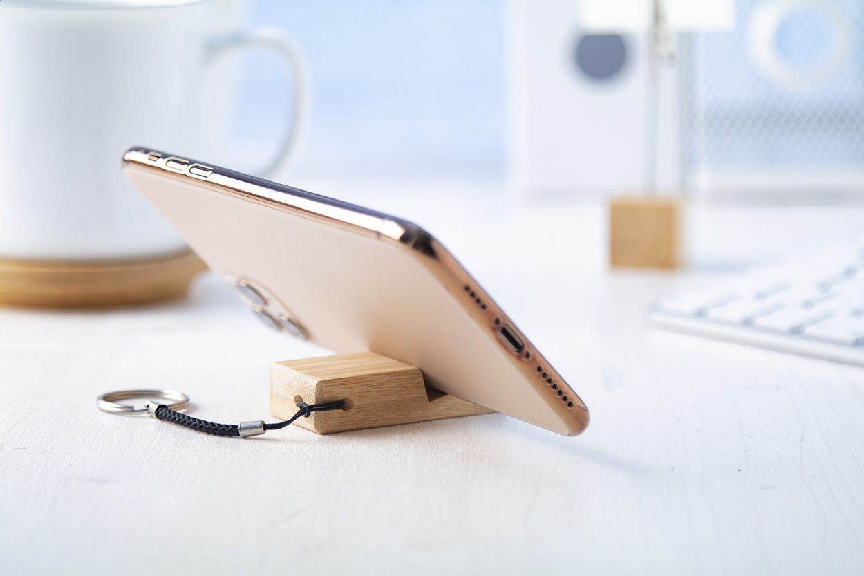 Mobiltelefon-tartó kulcstartó bambuszból, fém gyűrűvel.