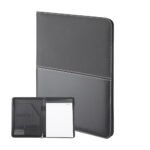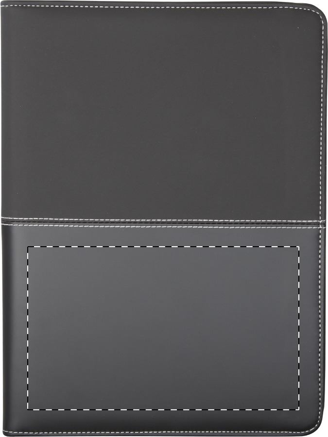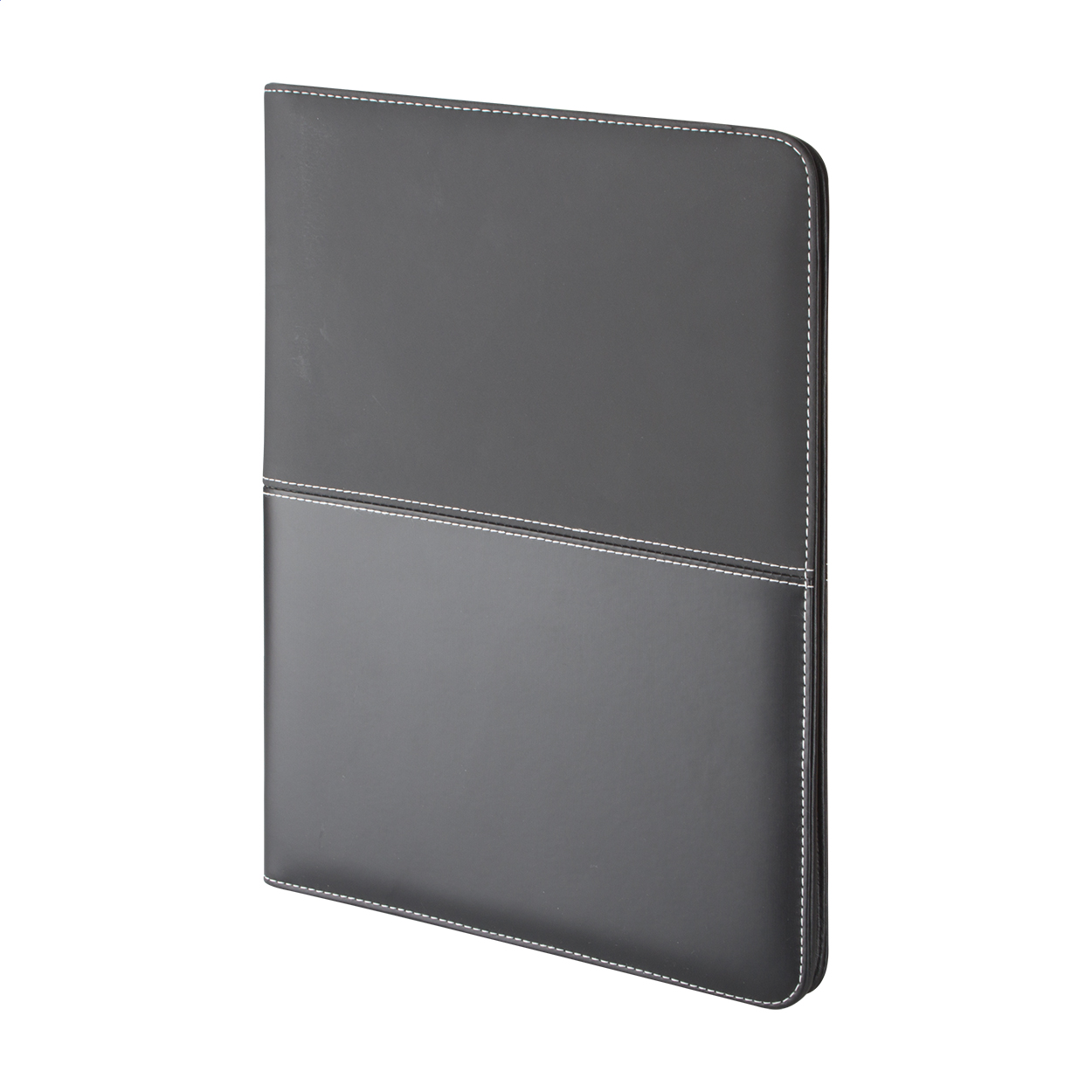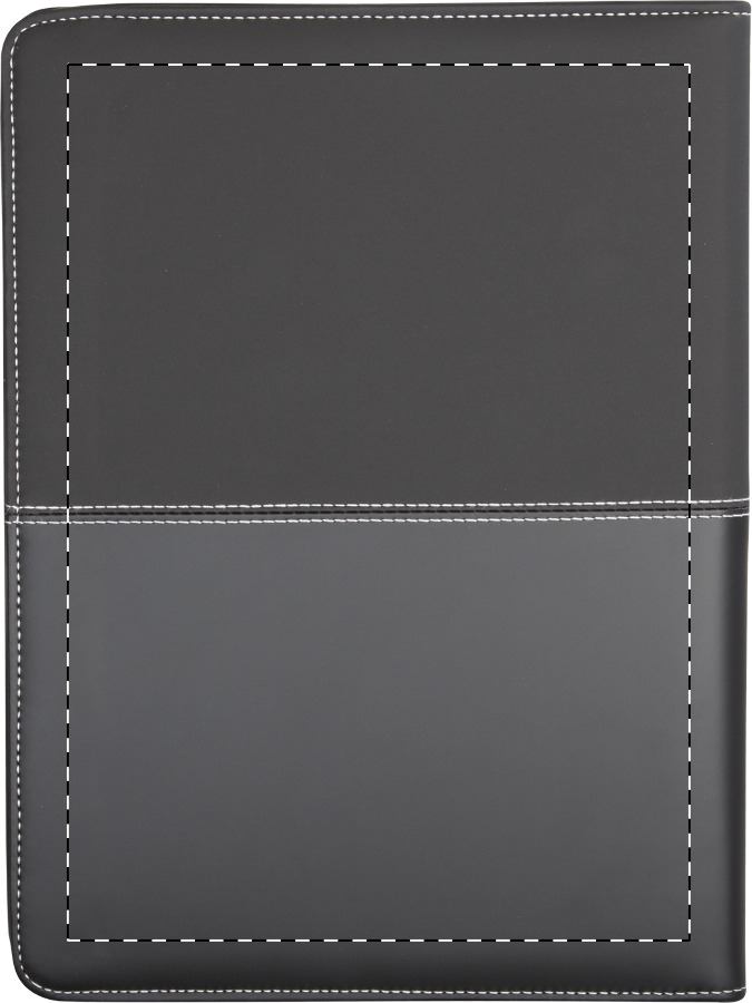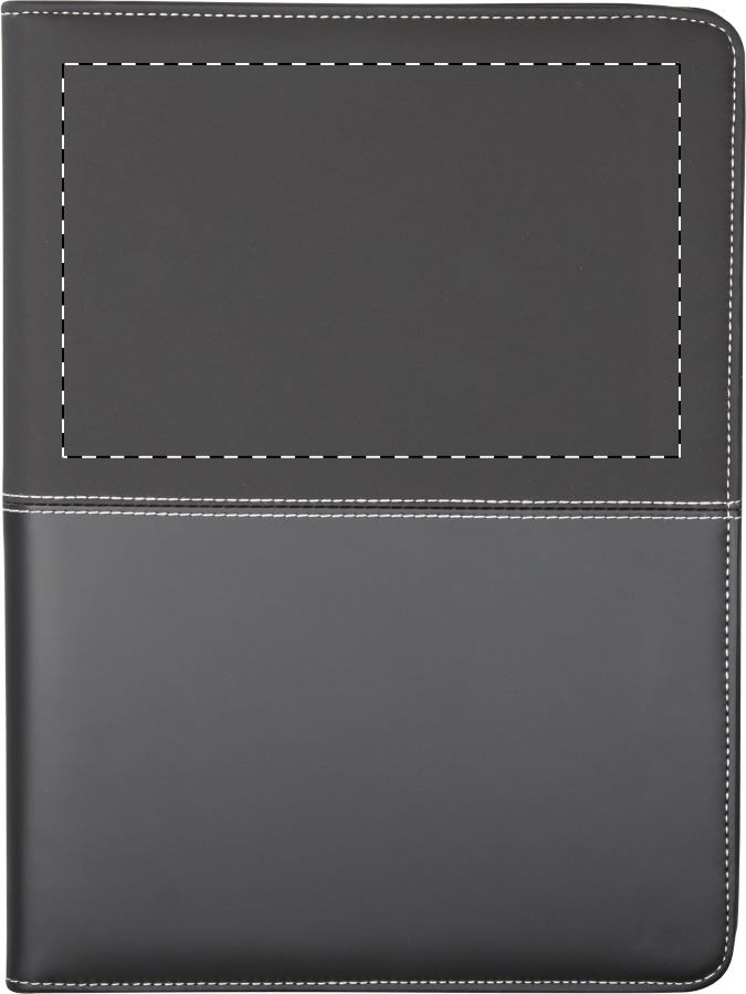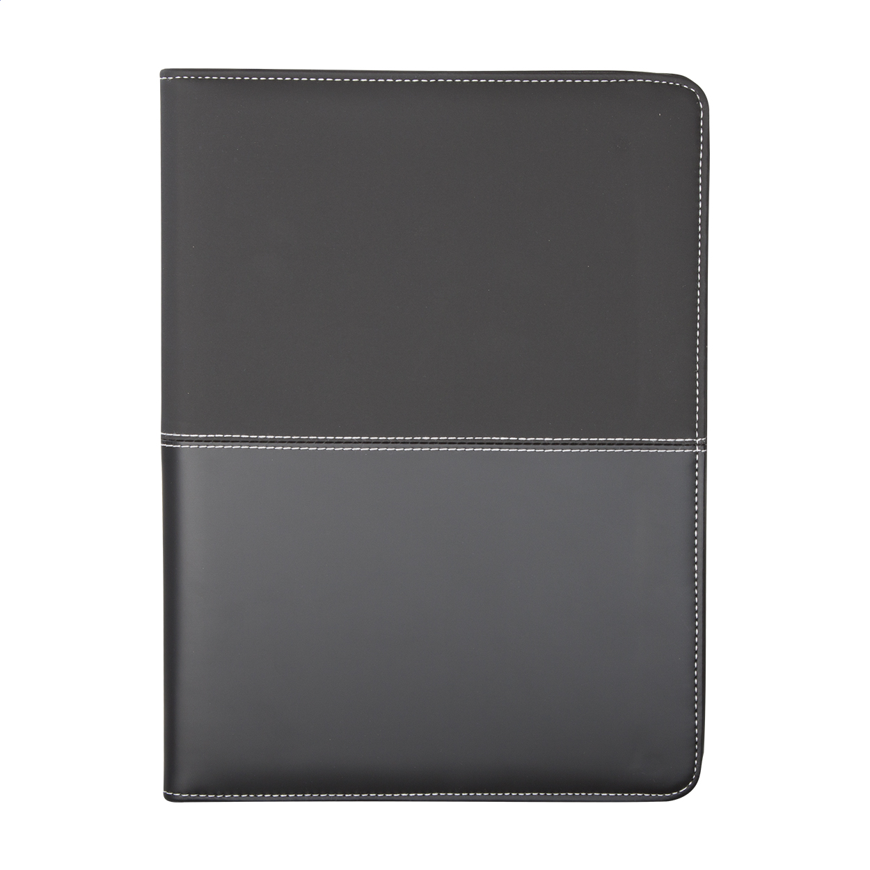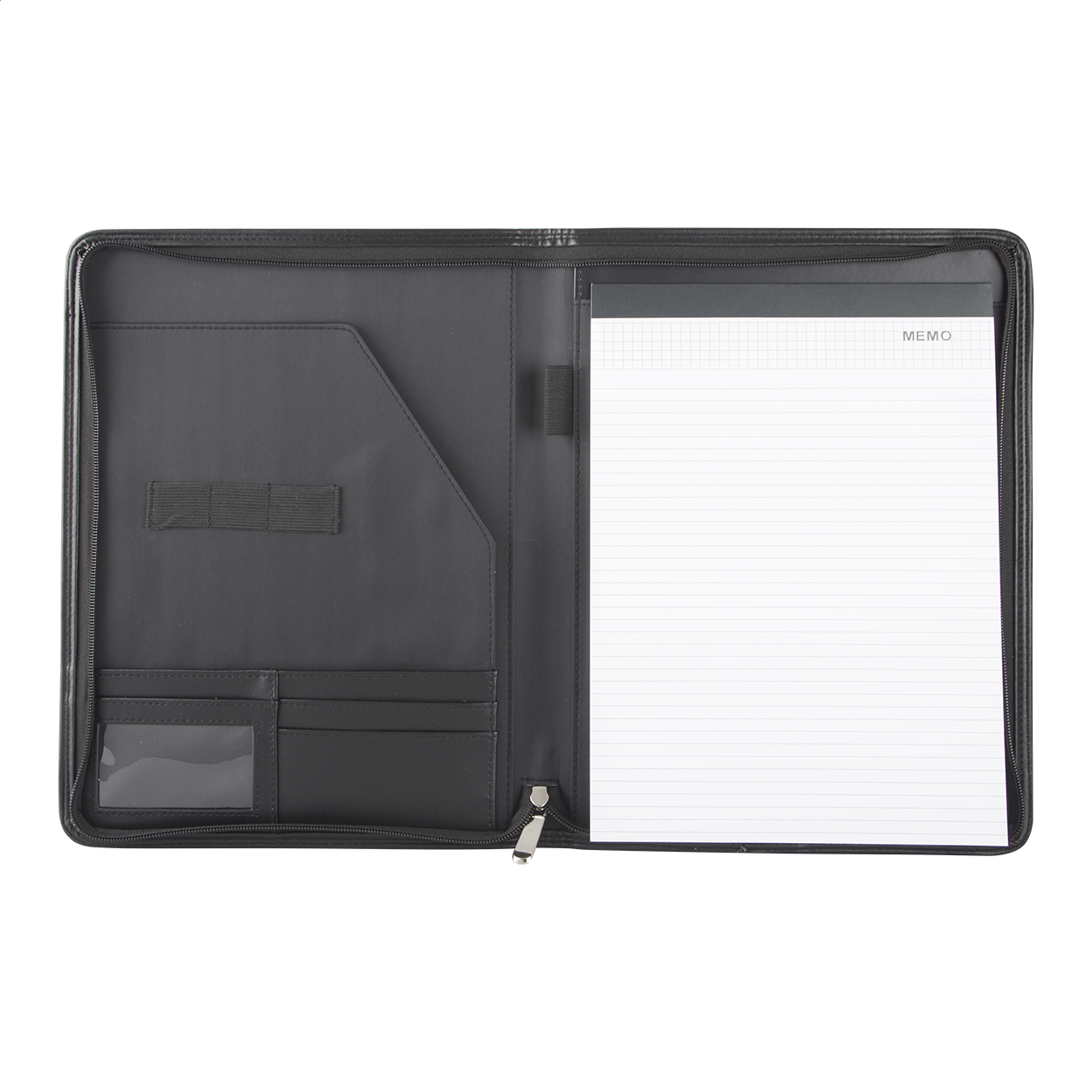 A4-es, cipzáras PU bőr iratmappa 20 lapos vonalas jegyzetfüzettel, jegyzettartó, névjegytartó és tolltartó résszel.