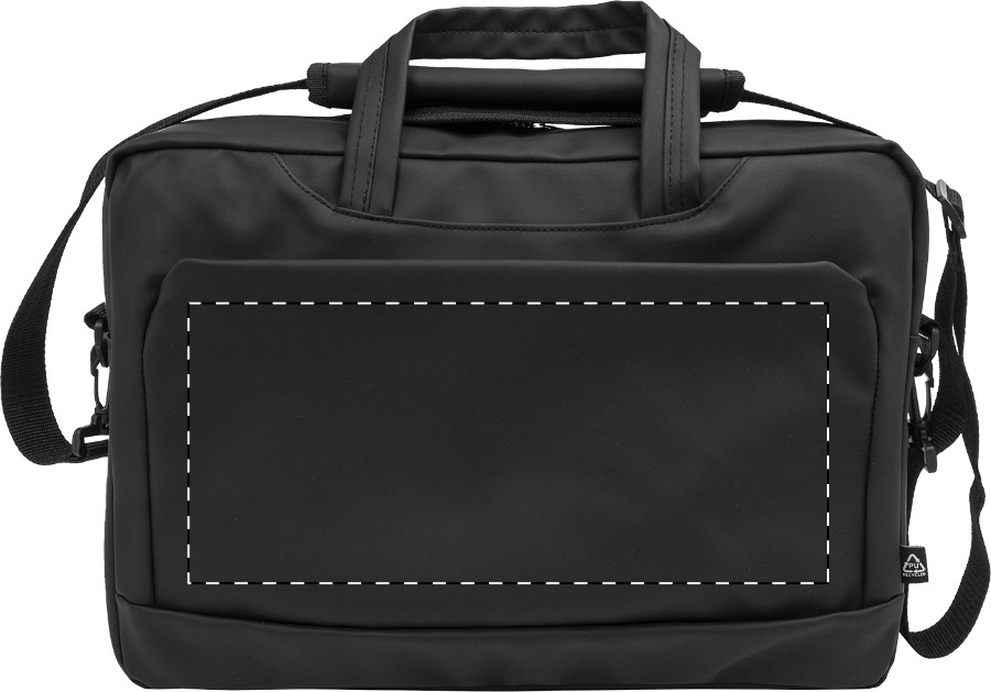 Vízálló, puha, újrahasznosított PU bőr dokumentum- és laptoptáska cipzáras rekesszel, cipzáras elülső zsebbel, állítható vállpánttal és párnázott laptop rekesszel (15"). Megkülönböztető újrahasznosított PU címkével.