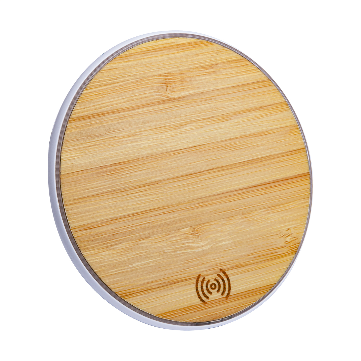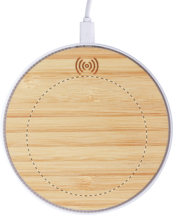 Vezeték nélküli mobiltelefon-töltő (10W) bambusz és műanyag borítással. USB töltőkábellel szállítjuk.