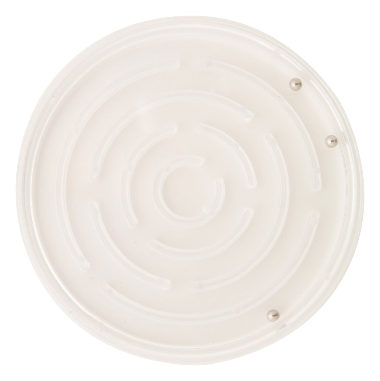 Műanyag, köralakú labirintus játék három fém golyóval, egyedi grafikával. A termék ára tartalmazza a kétoldalas digitális nyomtatást. Minimális rendelési mennyiség: 100 db.