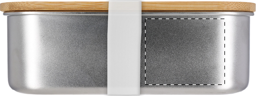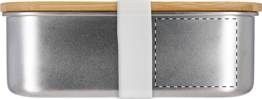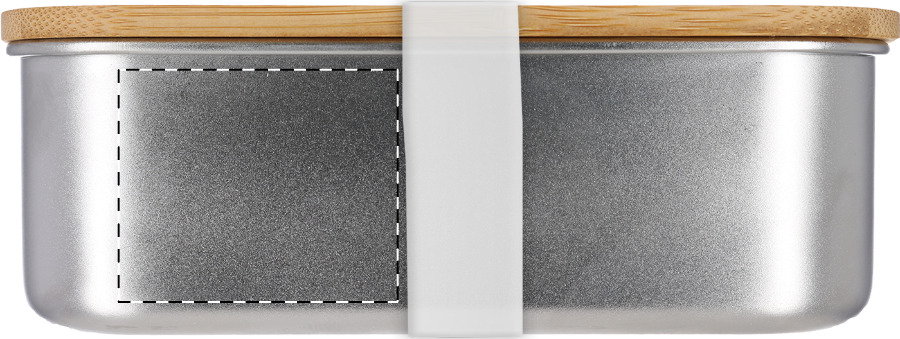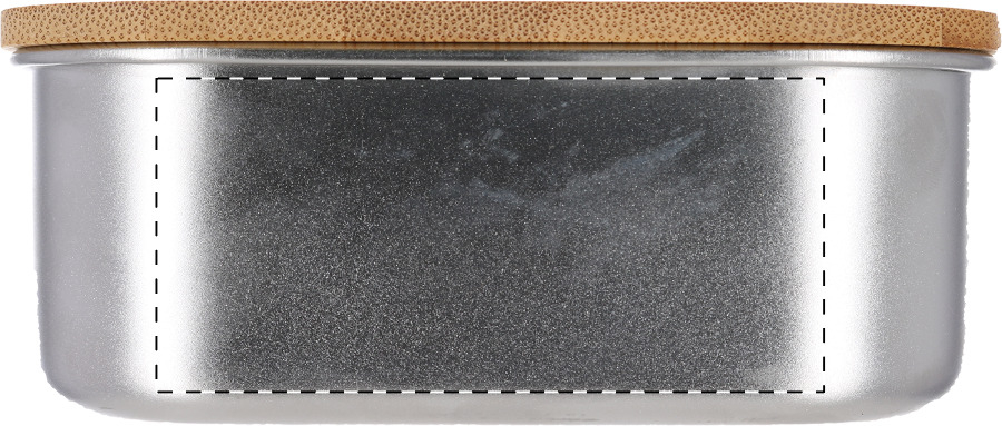Rozsdamentes acél uzsonnás doboz, természetes bambusz tetővel és gumipánttal, 800 ml.