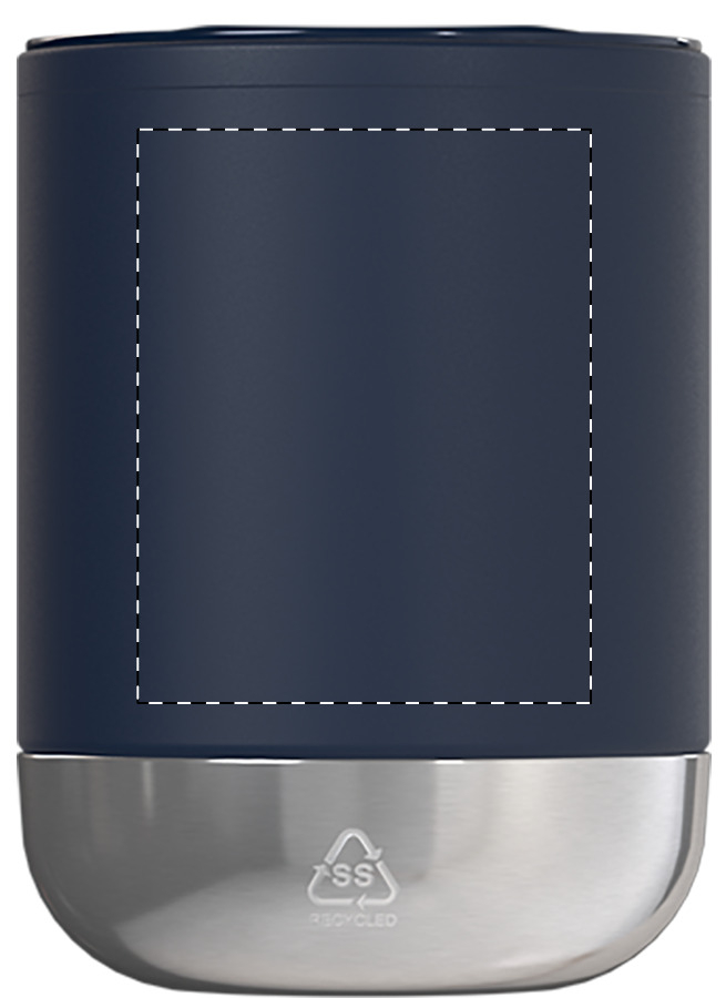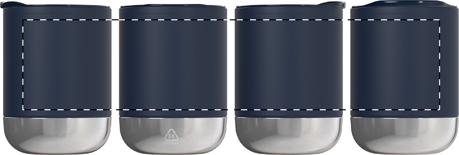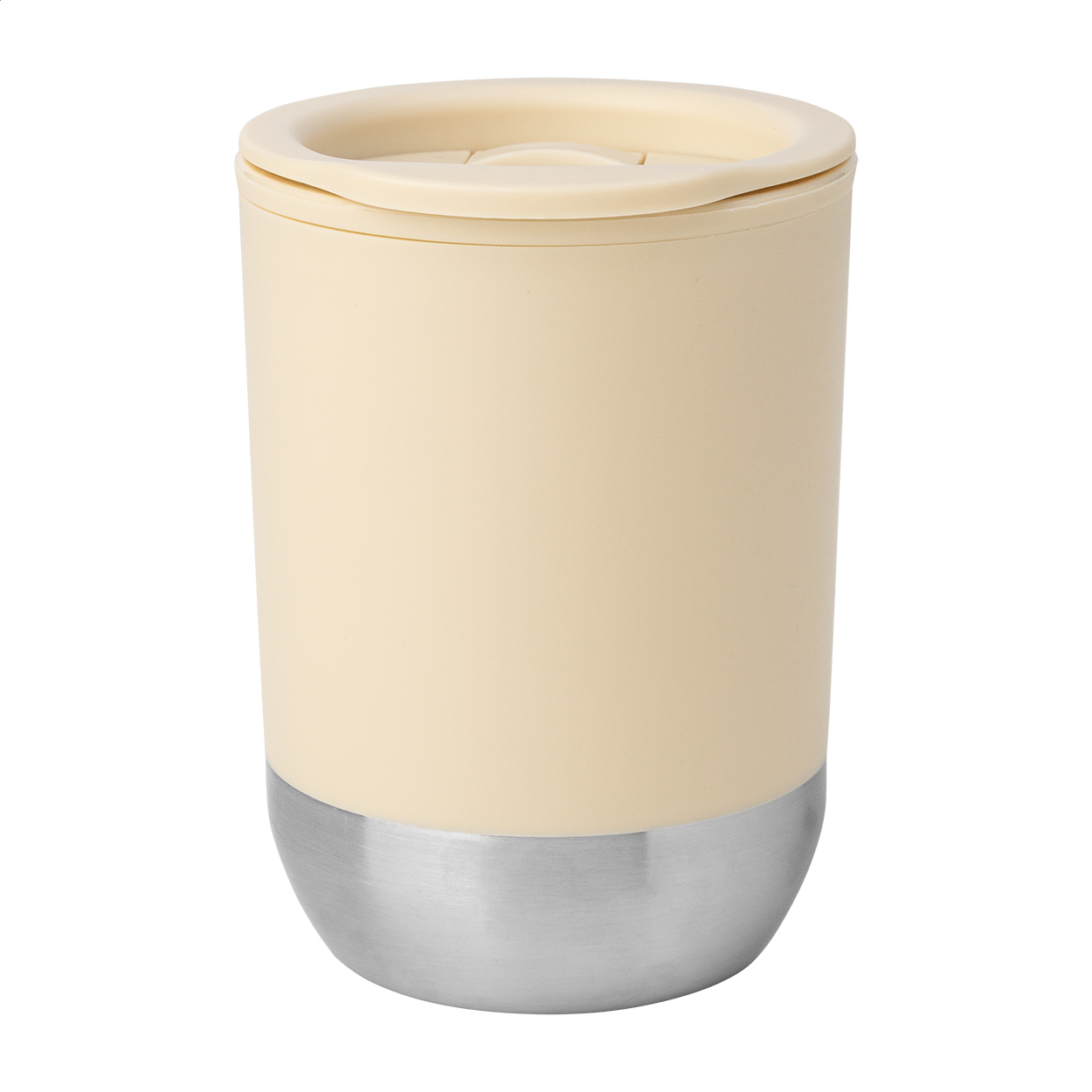 Duplafalú, PP műanyag szigetelésű thermo pohár újrahasznosított rozsdamentes acél talppal és ivófedéllel. 300 ml.
