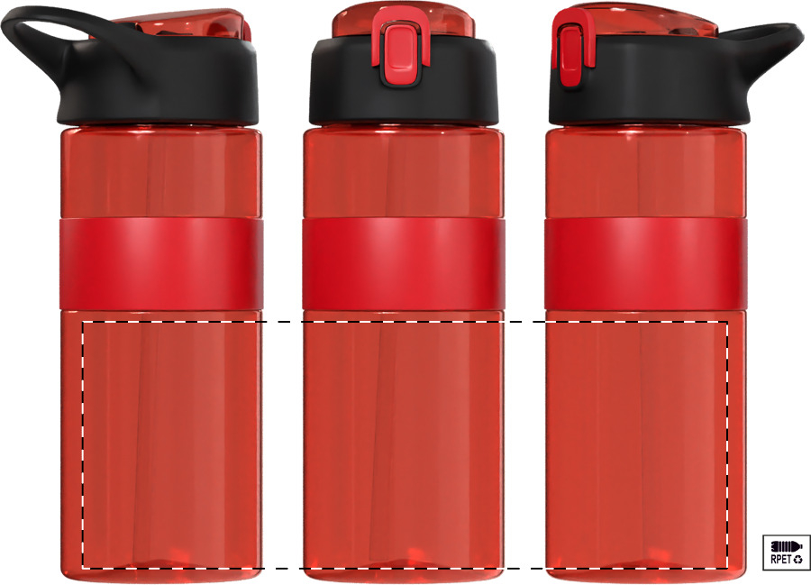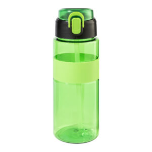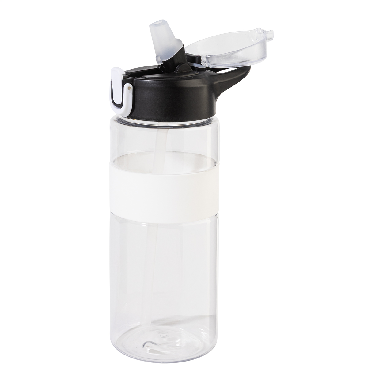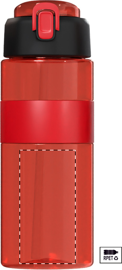 RPET sportkulacs szilikon markolattal, automatikusan nyíló, pattintható tetővel, beépített szívószállal, szilikon ivó résszel és biztonsági zárral. 700 ml. BPA-mentes. Nem alkalmas szénsavas italok tárolására.