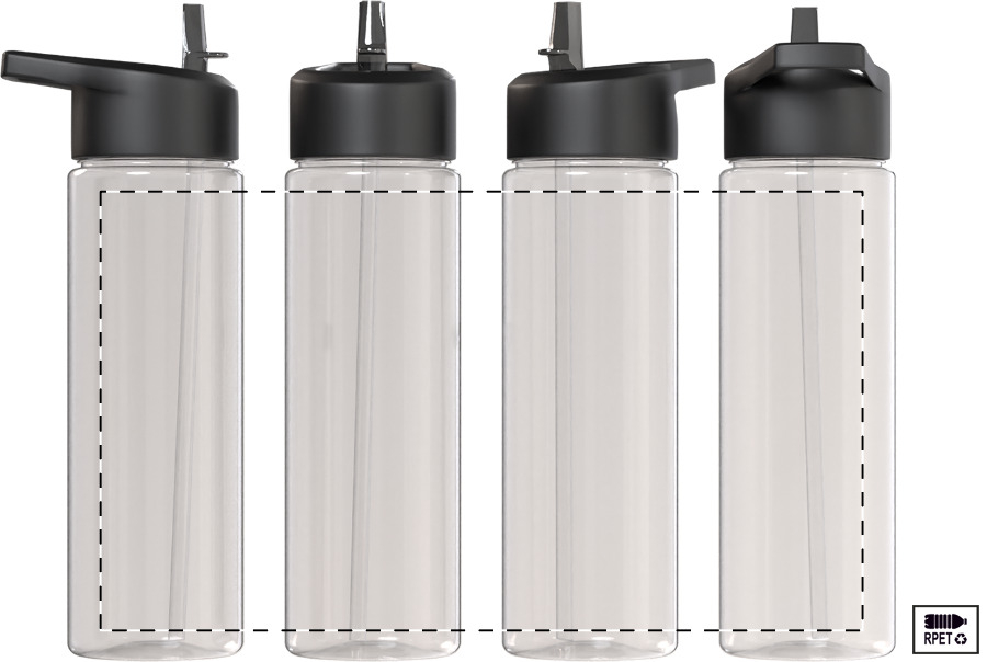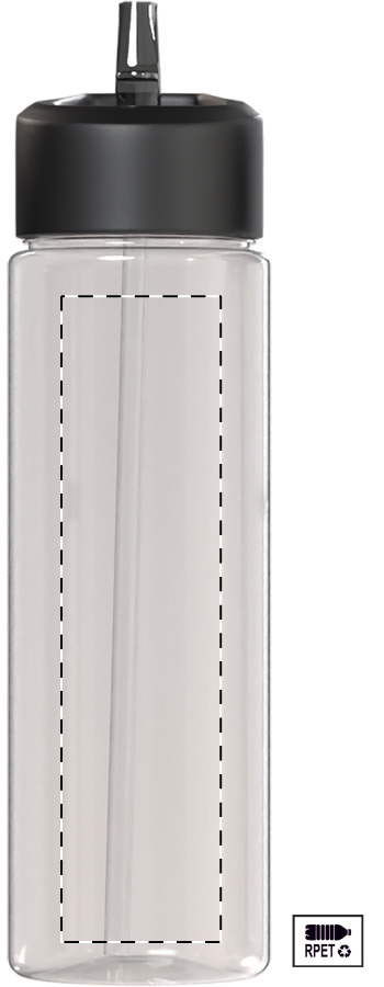 RPET sportkulacs PP felhajtható fedéllel és beépített szívószállal. 650 ml. BPA mentes. Nem alkalmas szénsavas italok tárolására.