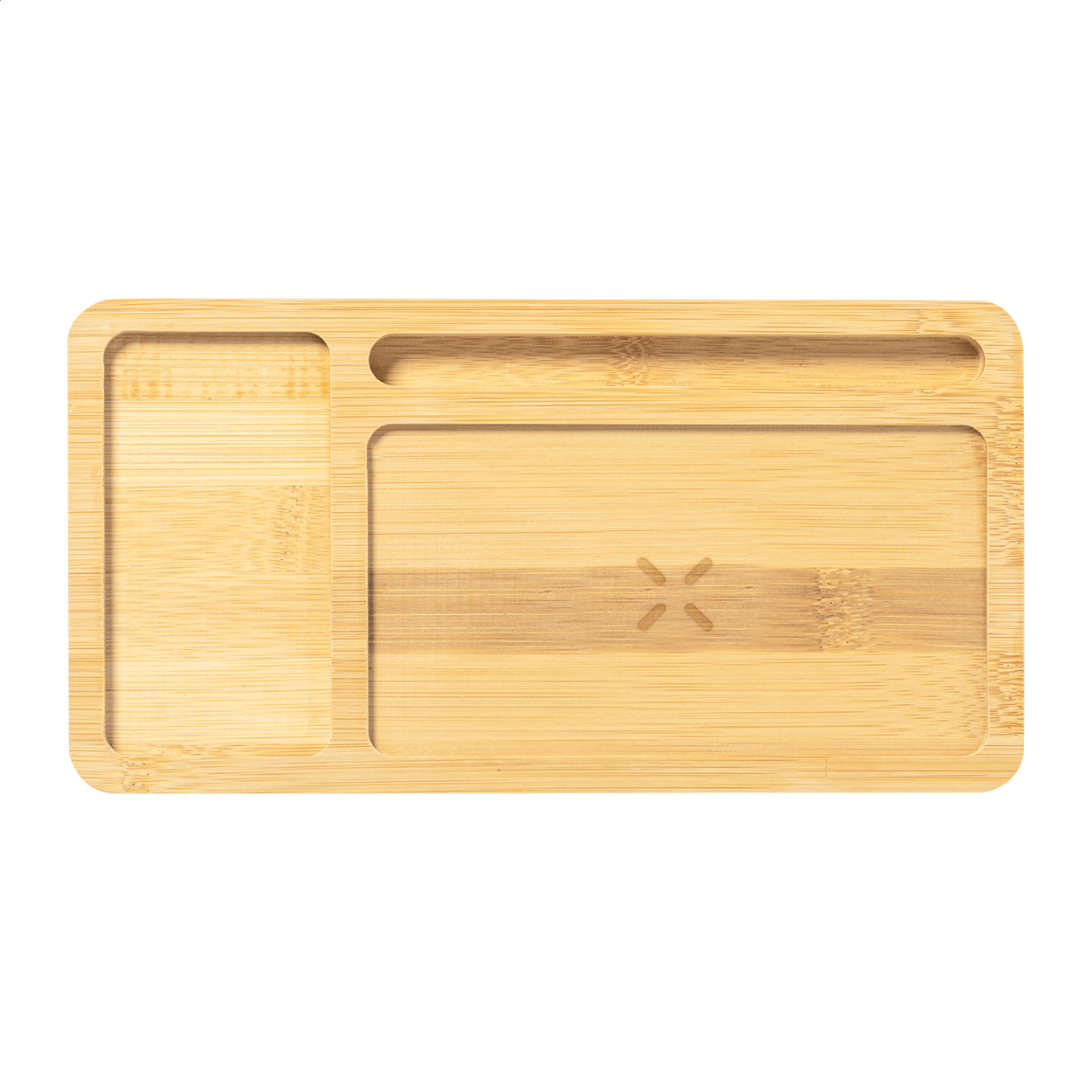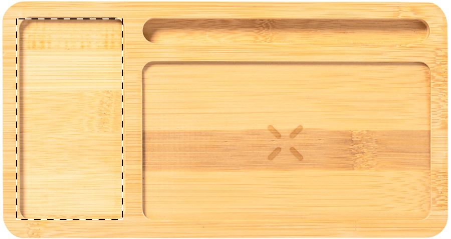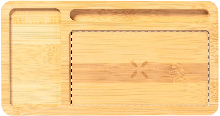 Bambusz asztali rendszerező és mobiltelefon-tartó, beépített vezeték nélküli töltővel (15W). USB töltő porttal, mely egyszerre 2 eszközt képes tölteni (1 vezeték nélküli, 1 vezetékes). Max. kimenet: 2000 mA. USB töltőkábellel szállítjuk.
