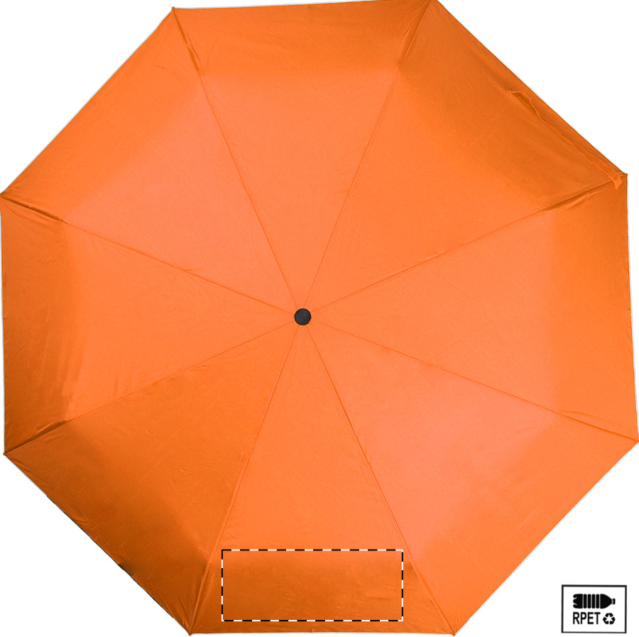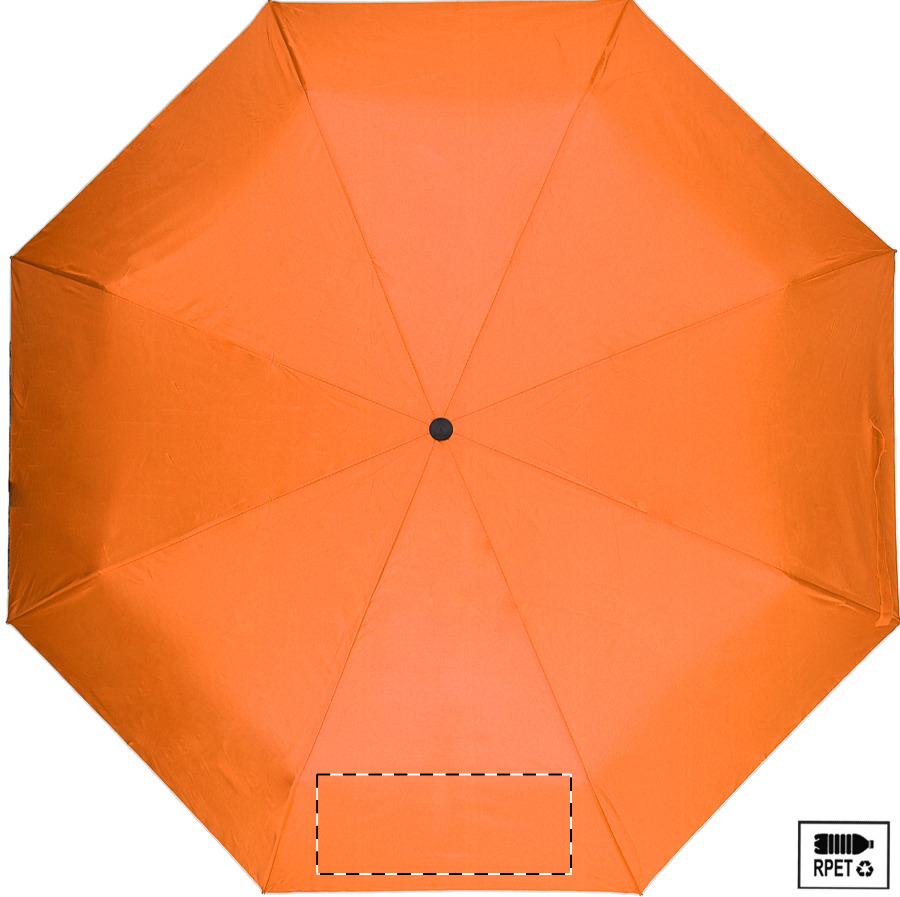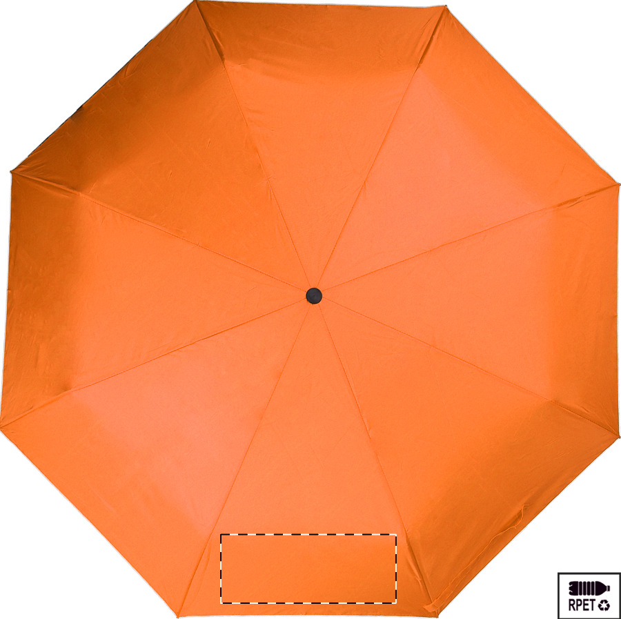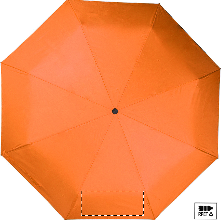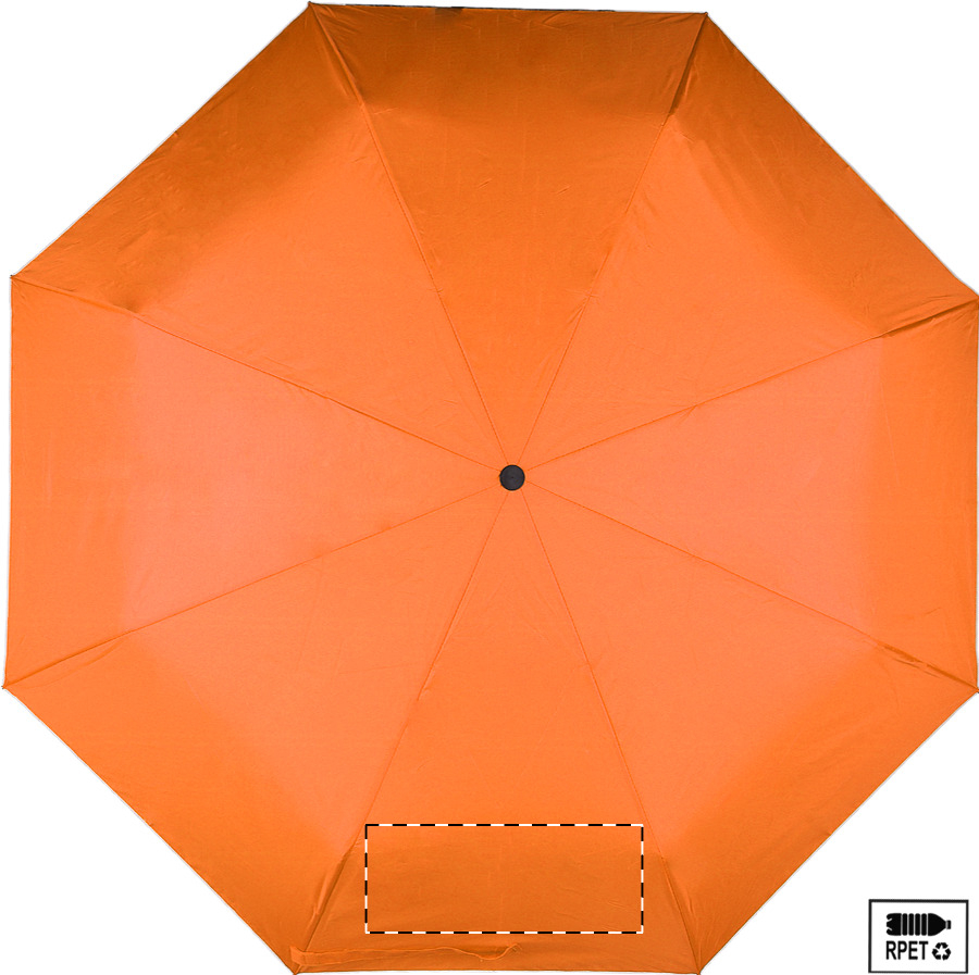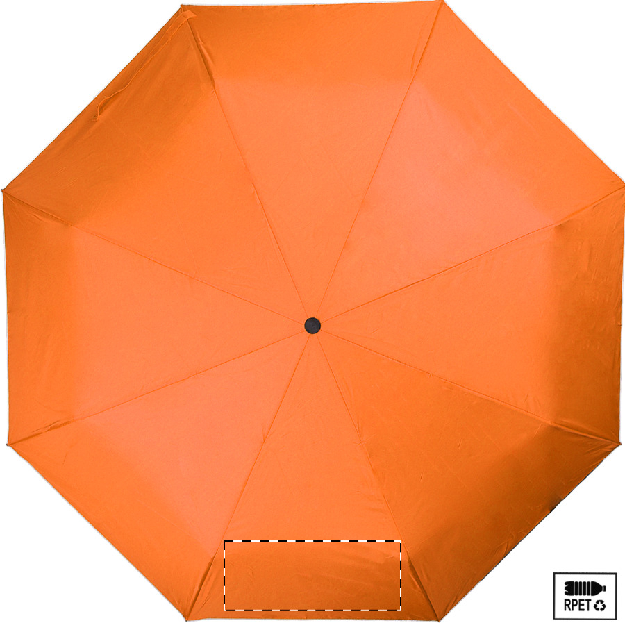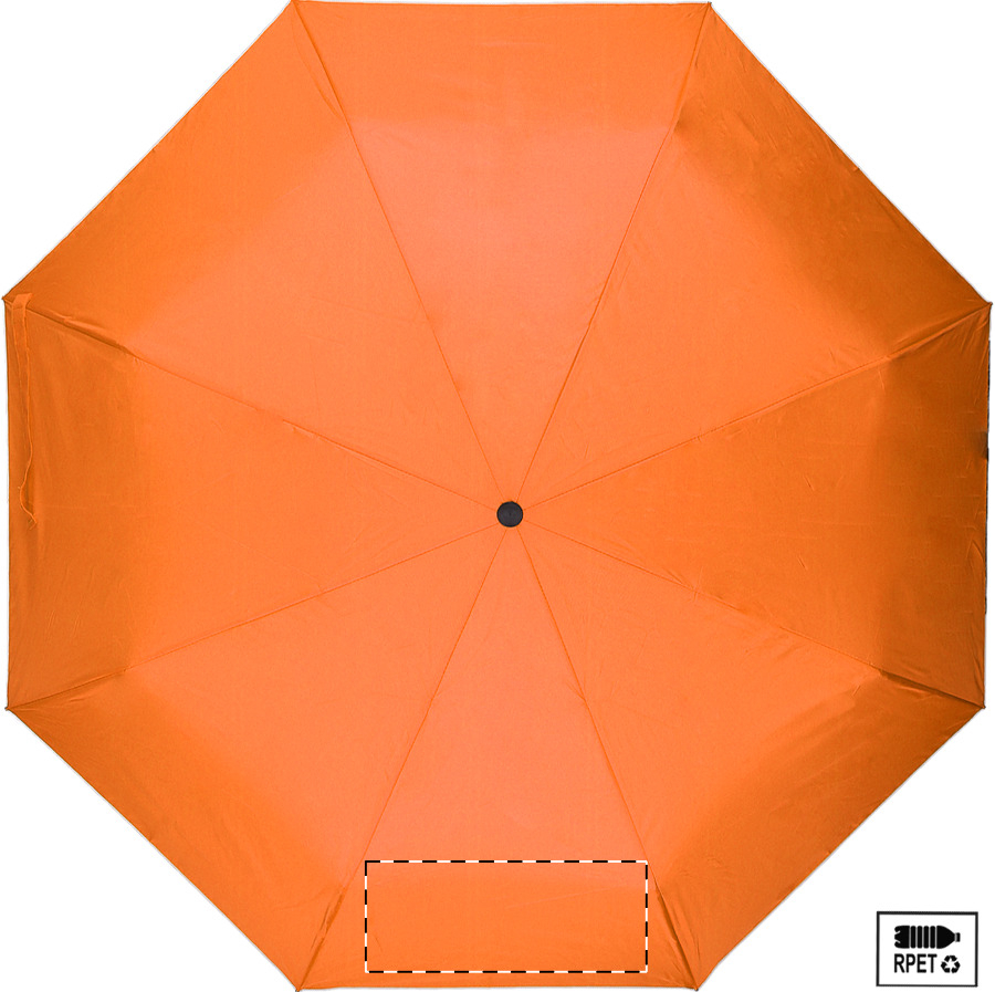 Teljesen automata (nyitás/zárás), szélálló, összecsukható esernyő 8 panellel, színben megegyező tasakban. Fém kerettel, üvegszálas bordákkal és gumírozott fogantyúval. 190T RPET pongee. Megkülönböztető RPET címkével.