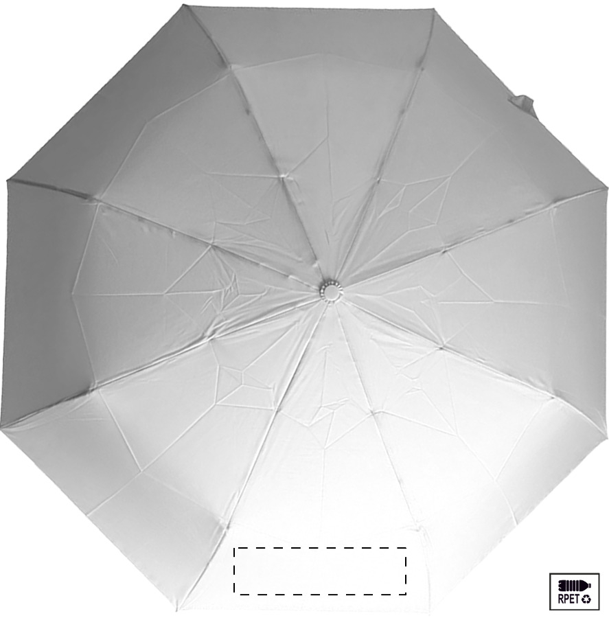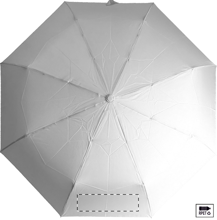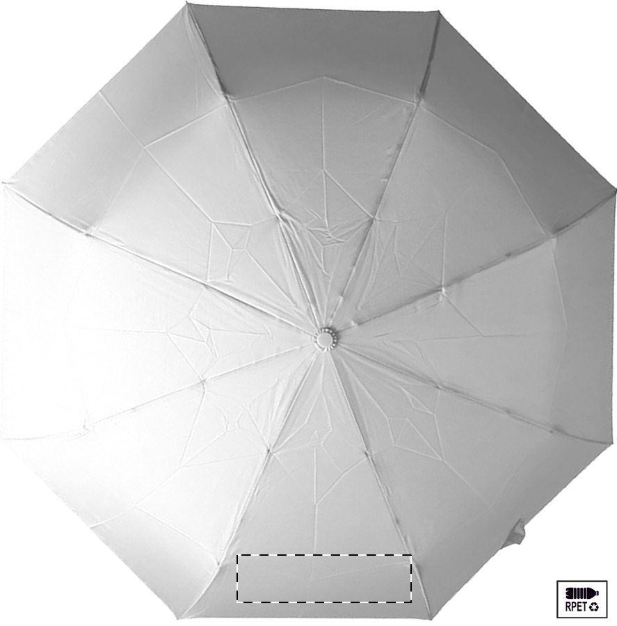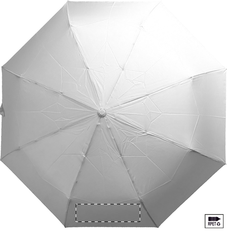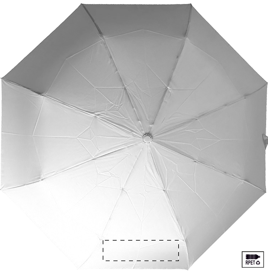 Nagy méretű, automata, szélálló és összecsukható esernyő 8 panellel, hozzáillő színű tasakban. Fém kerettel, üvegszálas bordákkal és ABS fogantyúval, kézi szíjjal. 190T RPET pongee. Megkülönböztető RPET címkével.