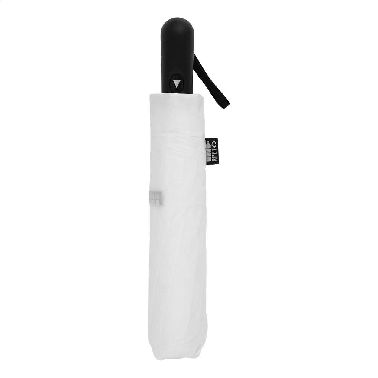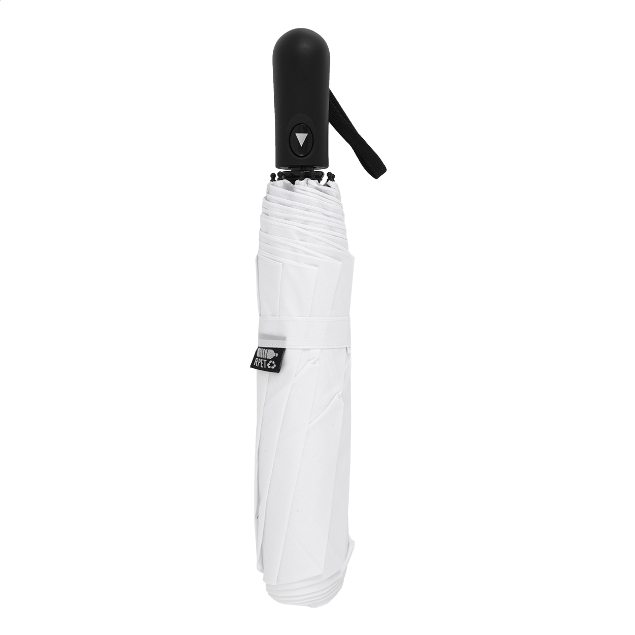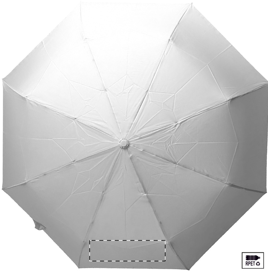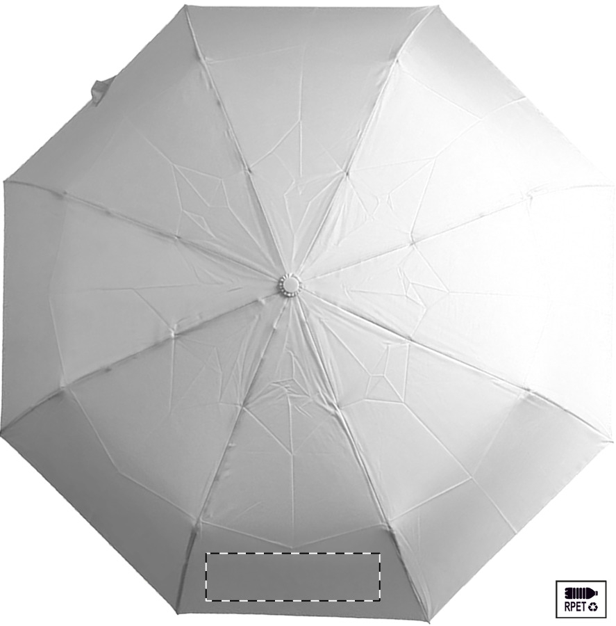 Nagy méretű, automata, szélálló és összecsukható esernyő 8 panellel, hozzáillő színű tasakban. Fém kerettel, üvegszálas bordákkal és ABS fogantyúval, kézi szíjjal. 190T RPET pongee. Megkülönböztető RPET címkével.