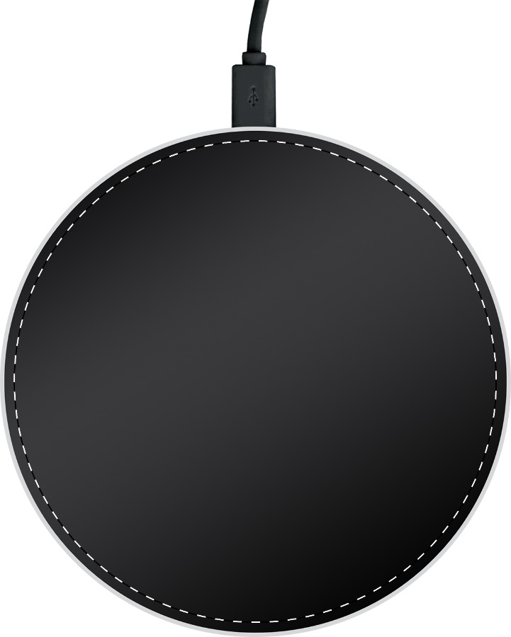 Vezeték nélküli mobiltelefon-töltő (5W) műanyag borítással és LED fénnyel, ami a gravírozott emblémát megvilágítja. USB töltőkábellel szállítjuk.