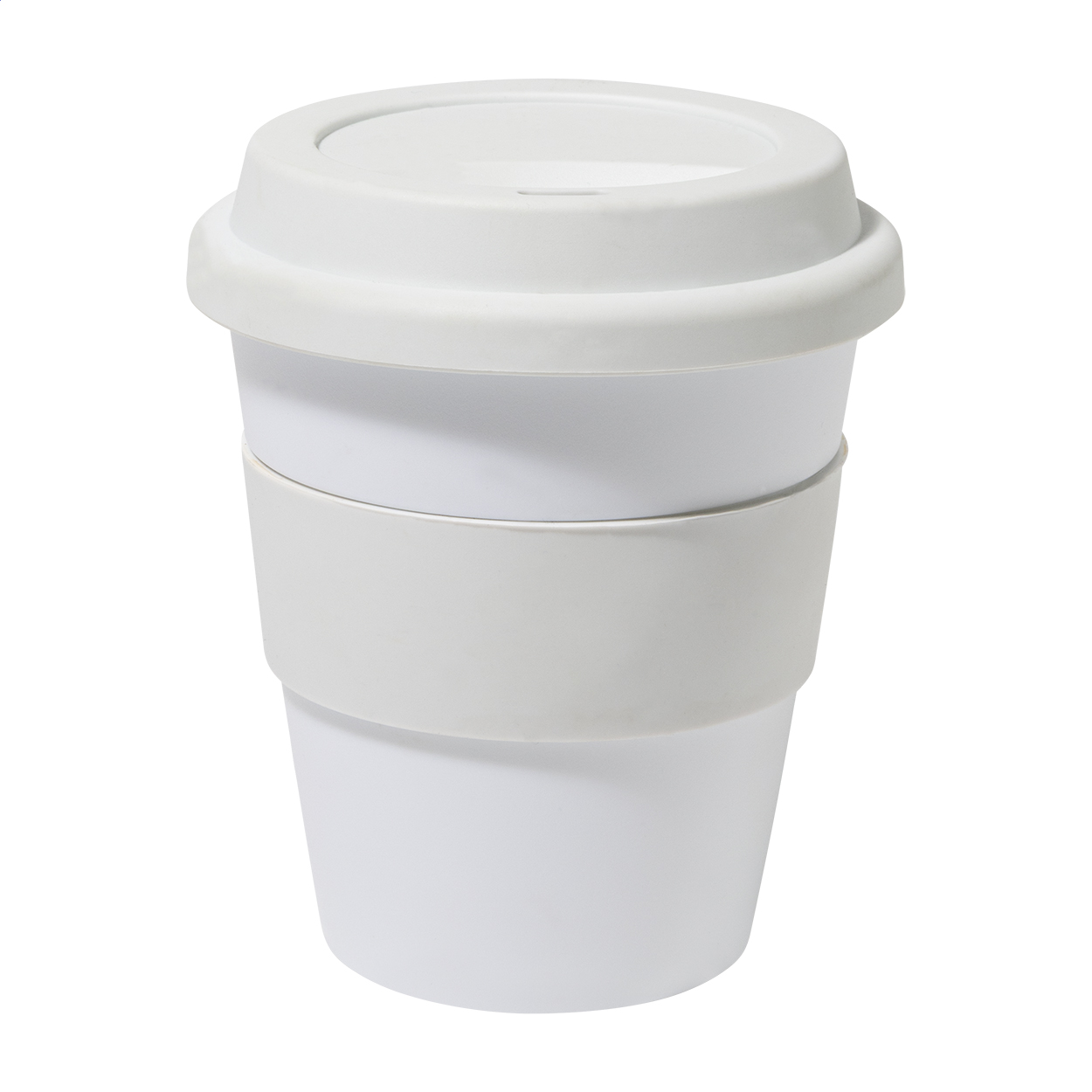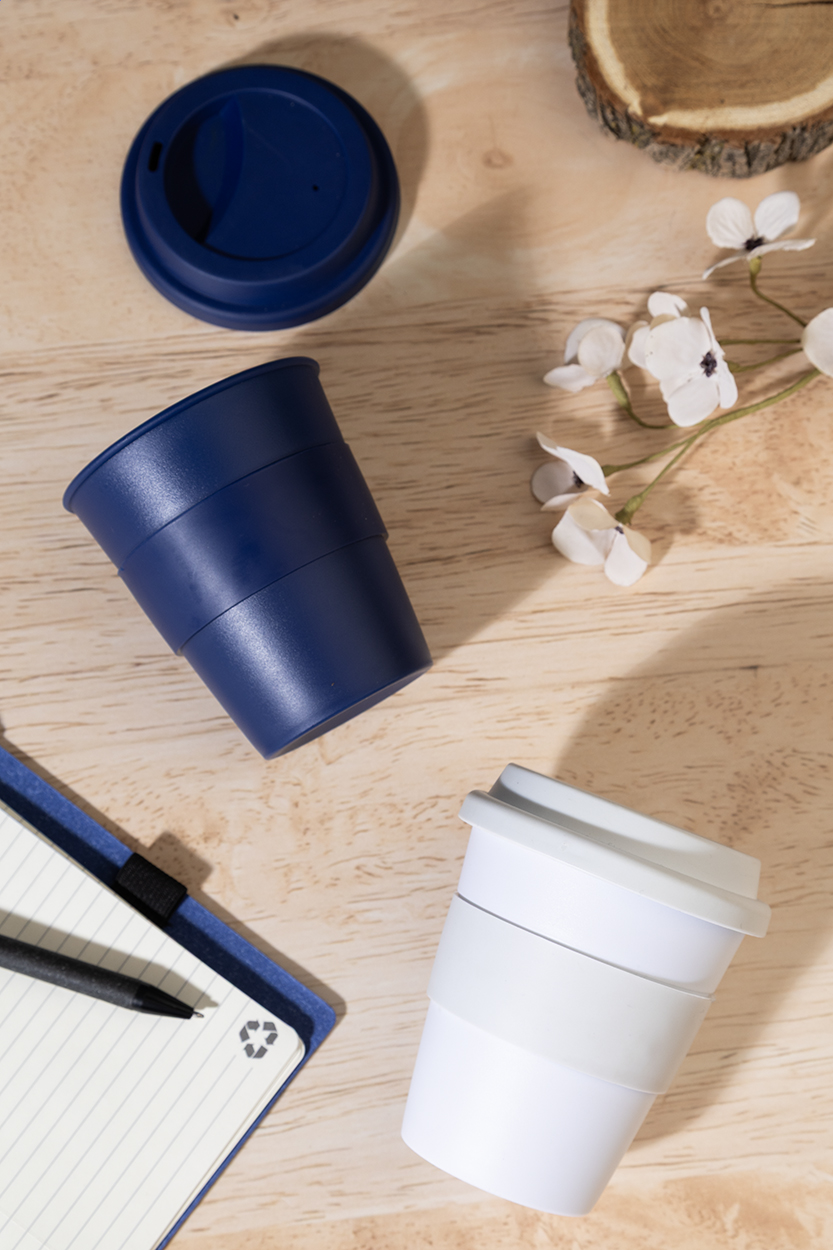 Egyfalú, PP műanyag utazópohár TPE ivófedéllel és markolattal. 350 ml.