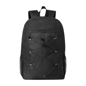 RPET hátizsák cipzáras rekesszel és elülső zsebbel, hálós oldalzsebekkel, párnázott hát- és vállpánttal. 600D RPET poliészter, megkülönböztető RPET címkével.