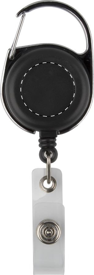 Fém és műanyag síbérlettartó teleszkópos zsinórral és karabinerrel.