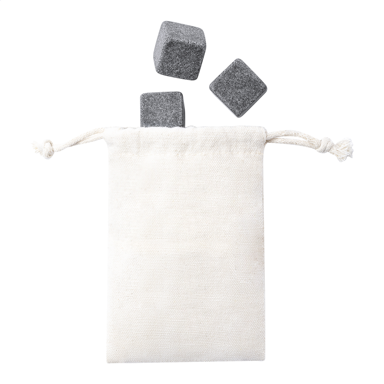4 darabos újrahasználható, kő jégkocka szett pamut tasakban.