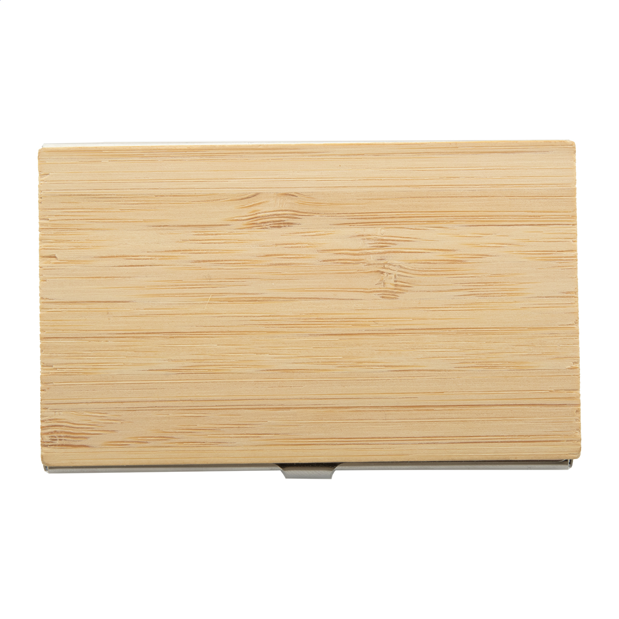 Bambusz borítású fém névjegykártya tartó.