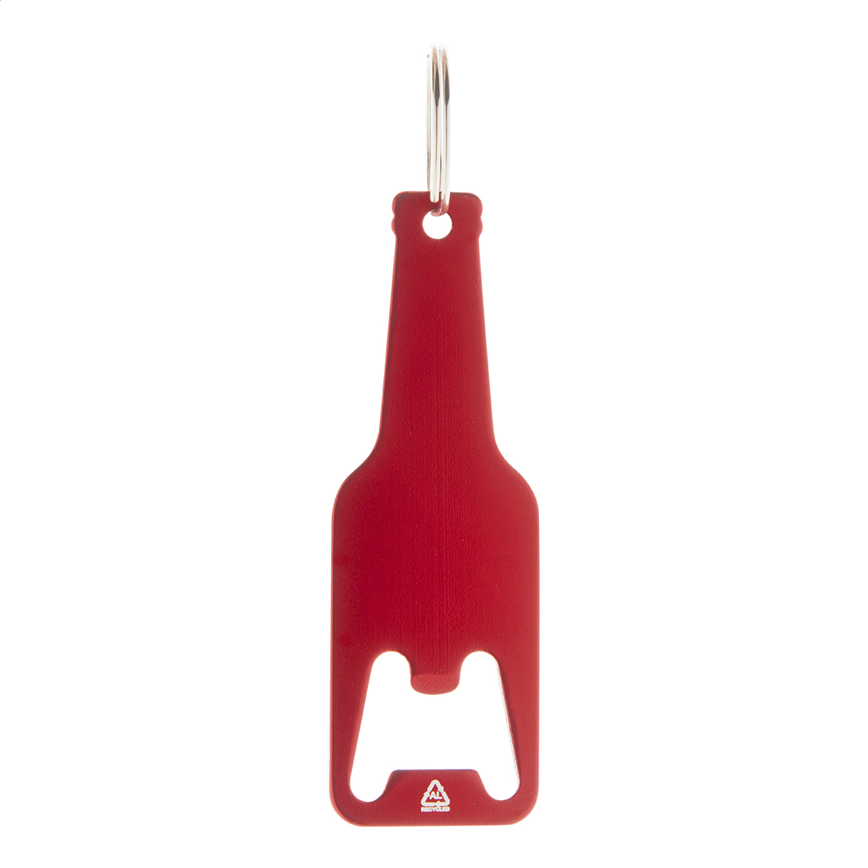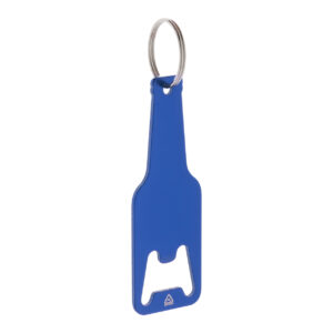 Palack formájú, újrahasznosított alumínium üvegnyitó fém karikával.