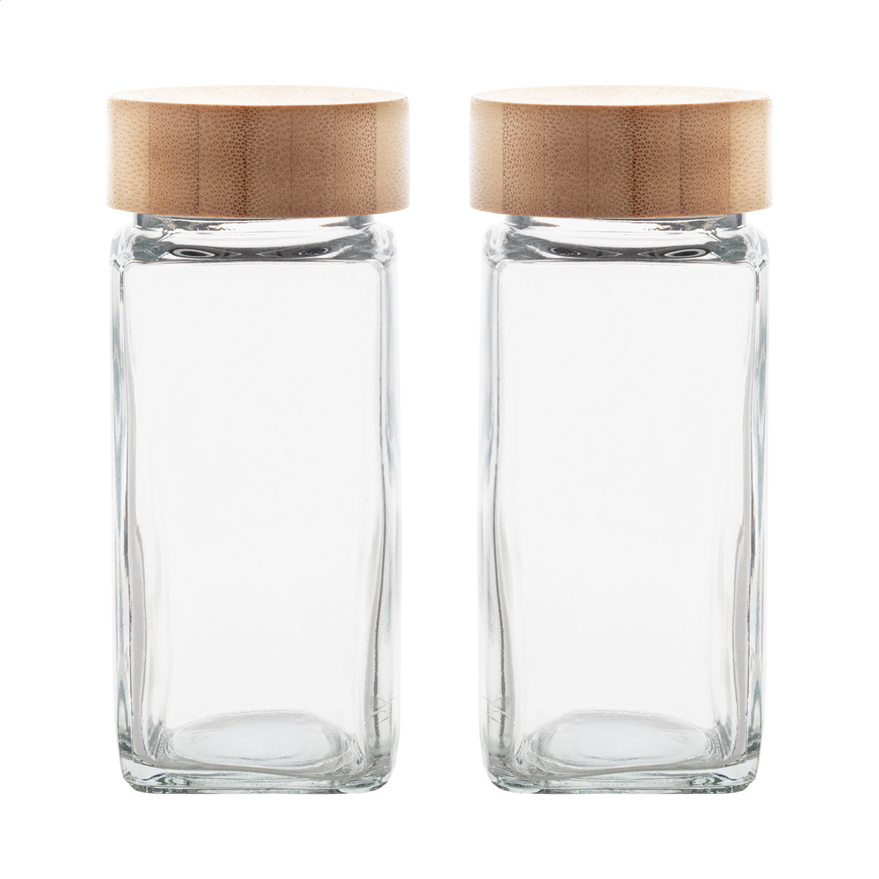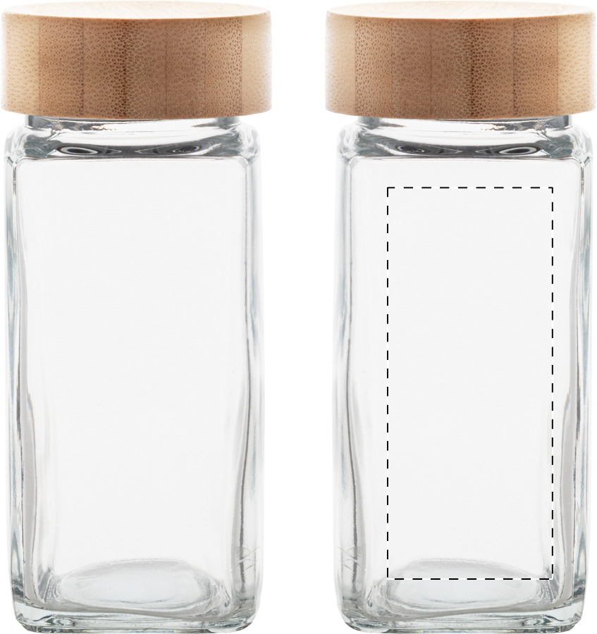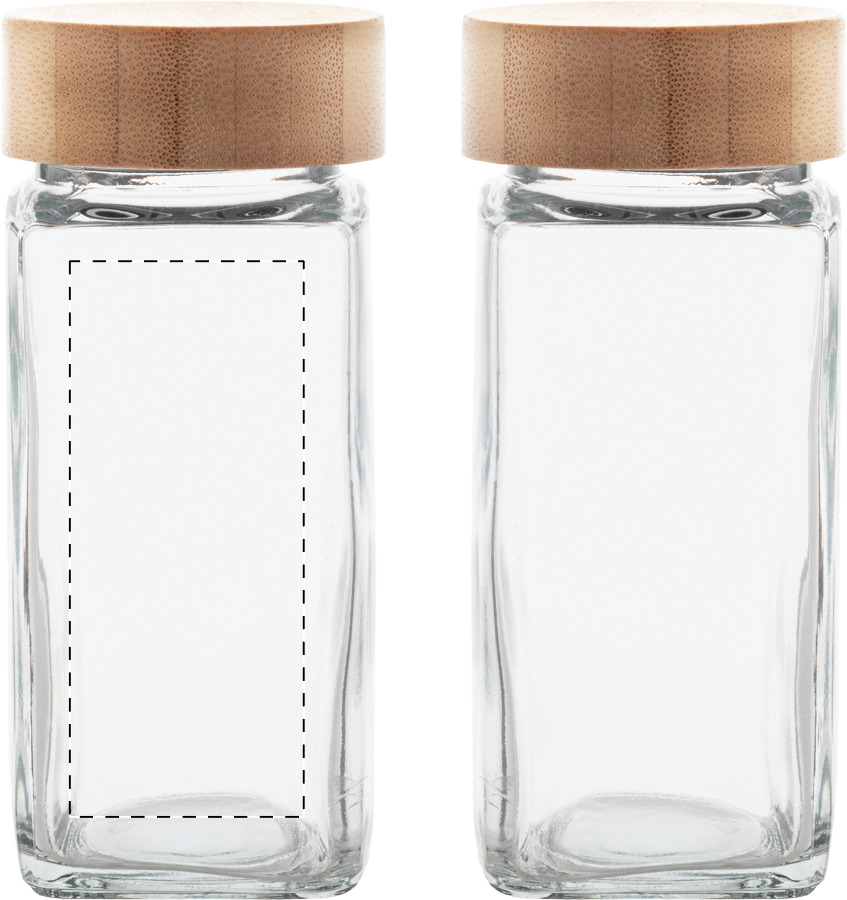 2 db-os üveg fűszertartó szett bambusz fedővel, 120 ml. Kraft papír dobozban.
